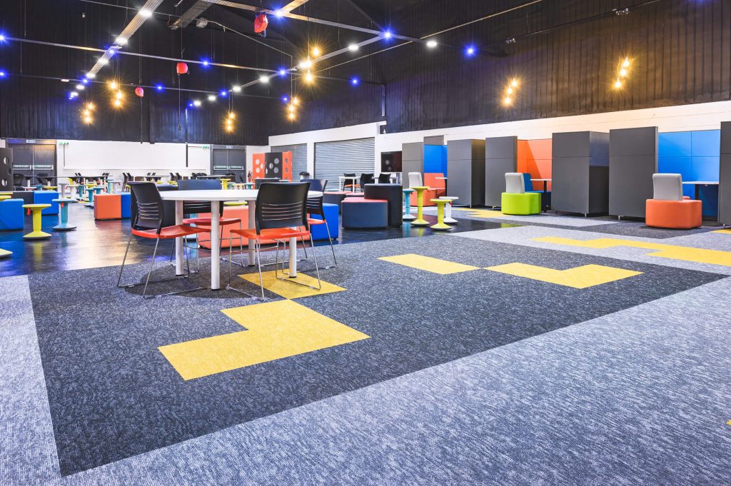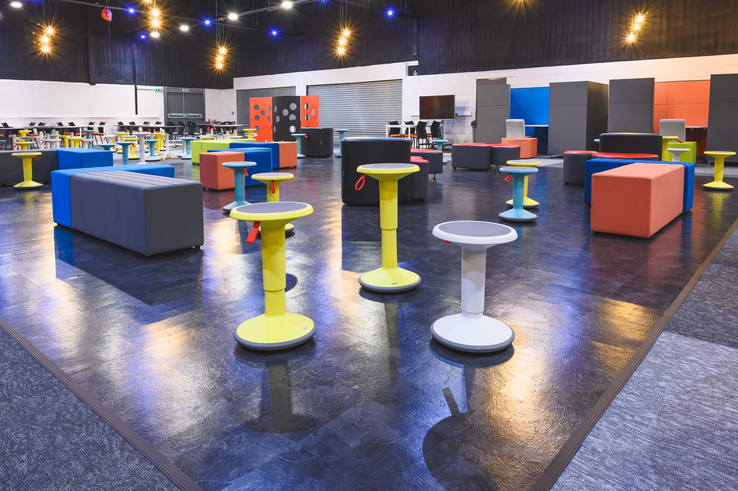 To encourage interaction and creativity Hartpury University converted into a student social study zone its old indoor sports hall. The Gloucestershire based university and college, which specialises in agriculture, animal, equine, sports and veterinary nursing, had wanted to transform its old sports hall into a thriving collaborative environment for some time and brought in interior design specialists, Cobus, to carry out the challenging renovation.The family-run company, based in Gloucester, which has been installing learning spaces to suit different educational environments for over 40 years, was tasked with creating a modern, design-led area, that moved away from the traditional corporate design.To achieve this, Cobus installed a range of colourful Fatboy beanbags, Interstuhl stools and Senator Trillipse chairs across the large area, ensuring a social atmosphere would be fostered amongst the students.