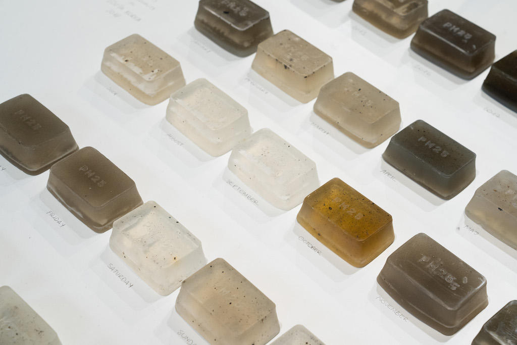 To materialize those harmful effects of air pollution, jiheemoon created the paradoxical and thoughtful “PM 2.5 pollution soaps”. Using design as a provocative tool, in order to raise awareness she is challenging the problem-solving nature of design thinking. “2.5 PM pollutant soaps” project confronts users with a deeper ethical question in order to induce enduring reflections and reevaluation of one’s daily decisions in relation to their environment.