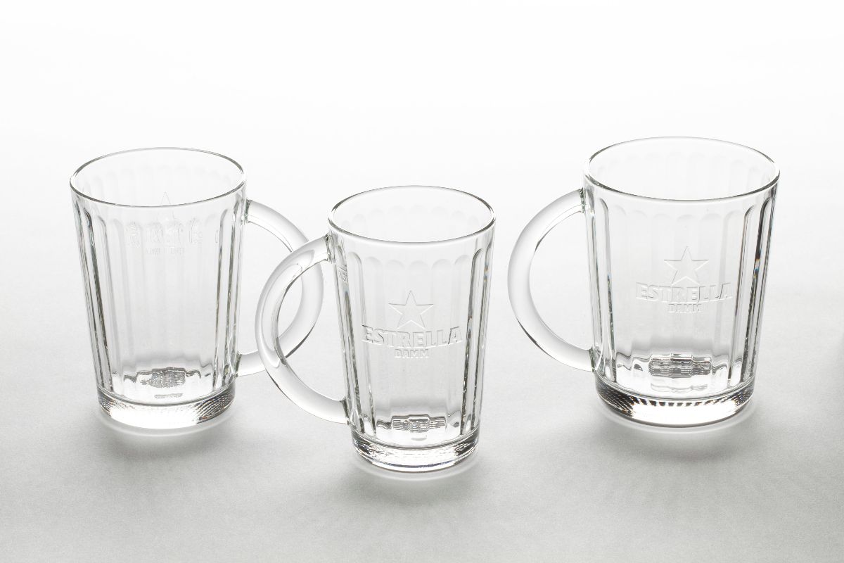 New beer mugs of Spanish company Estrella Damm are designed by the well-known Catalan designer Martí Guixé, pioneering food design since 1997. The relevant details of the design are: the mugs increase in capacity increasing in diameter and not in height, the handle does not change in size or position, which enhances its photogene as a group and builds a more compact, solid and forceful perception of the Estrella Damm mugs.In line with his philosophy, “Concepts and Ideas for Commercial Purposes” has thought of two tricks. The glass texture is on the inside, facilitating the possible application of occasional graphics by serigraphy on the outer surface. The Estrella Damm logo in high relief has its position on the face opposite to the user of the mug, which defines an open and convivial attitude. Photo by Inga Knölke, 2019