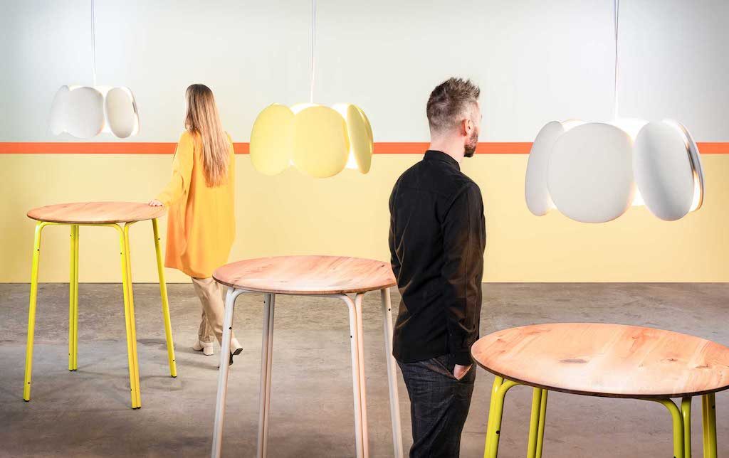Light collection Blossom is designed for Bogaerts Label by Mario Alessiani and iconically inspired by tulips. Long time collaboration with the Dutch brand brought to a collection restyled and extended.Six petals are fixed to a hexagonal metal structure, which also holds the led light source in the centre. Arranged in a ring the sections overlap so they each rest on top of one another and embrace the metallic frame. The slight roundness of the petals is reproduced through the padding of the panels, slightly overlapping with each another. Then pendant lamps come in 3 sizes and are produced with high-quality sound-absorbing foam and fabrics.The wall panels of Blossom come in 5 different sizes to create a graphic or playful setting on the wall. In order to have the collection as aesthetically pleasing as well functional, with the option to have each shape as a whiteboard to complement any professional interior. And each wall panel has optional lighting for ambience. Each space we live or work in is defined by colours, materials, shapes, climate and sound. All those elements help combine that unique vibe or atmosphere which have an effect on our well being. Whether we feel positive or negative, a serene ambience contributes to our state of mind and is balanced by aesthetically pleasing products.For Bogaerts Label, the possibility to adapt looks and feel of products to an interior is key. The ultimate goal is finding that balance between elegant and functional design. In the process of creating products, quality and durability are Bogaerts Label top priorities. Bogaerts Label creates interior objects designed for the professional market -produced in the Netherlands- that stimulate living and work environment.