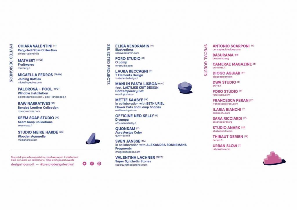 The theme of the second edition of the Brescia Design Festival, curated by Filippo Abrami – design in corso, with the patronage of the Municipality of Brescia, in collaboration with CarminiAmo, is the transformation, understood as a change of form and meaning. Transformation as an evolutive process. The event, held from 21 April to 21 May in Corso Mameli and Corso Garibaldi, occupy the unused shop windows and commercial spaces made available by the Corso delle Mercanzie Committee with installations, design works and experimental researches by independent creative young designers, national and international. A month of exhibitions, conferences, ateliers, workshops and a series of talks to enrich the educational offer for the interested audience and for schools (calendar at www.designincorso.com). We recommend: – at Musical ZOO in Corso Mameli 45, works by Duncan Gravestock (Studio Anark), author of the illustration used as the official graphic of the Festival. – the satellite show LIVE IN A GHOST TOWN with photos of Thibaut Derien (April 27 – May 21, Shadow Gallery). – Sunday, May 7th to 11th, in the historic center of Brescia, the ephemeral PLAYGROUND, for children 0 to 99 years old, created by Basurama with scraps from the local textile industry and obsolete school material. – on Monday, 8, the young Italian designer Sara Ricciardi meets the Brescia glass artisan Chiara Valentini with whom, during a week, experimented with different techniques and materials to make a collection. The atelier is documented by Camerae magazine, aproject, created by the collaboration between Jessica Soffiati and Francesca Iovene, who tells the most intimate parts of the artists sincerely and immersely through the study-visit. A new way to tell about their work and their journey: the interview and story about space and works are complemented by an important audio component that strengthens and amplifies the image of the environment, the work of the artist and of his personality.
