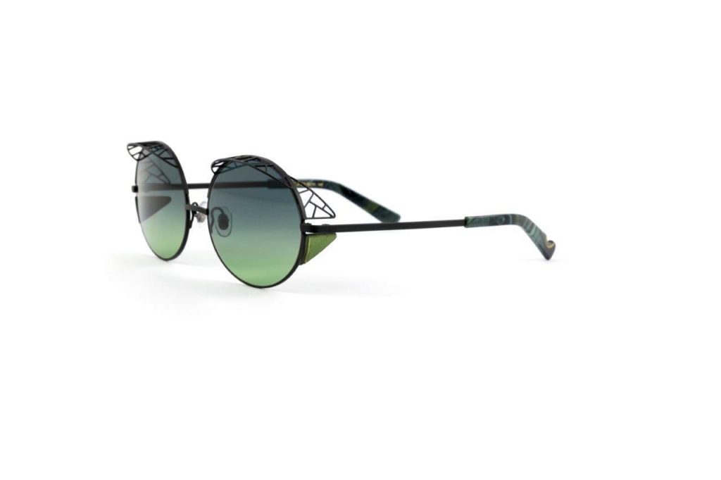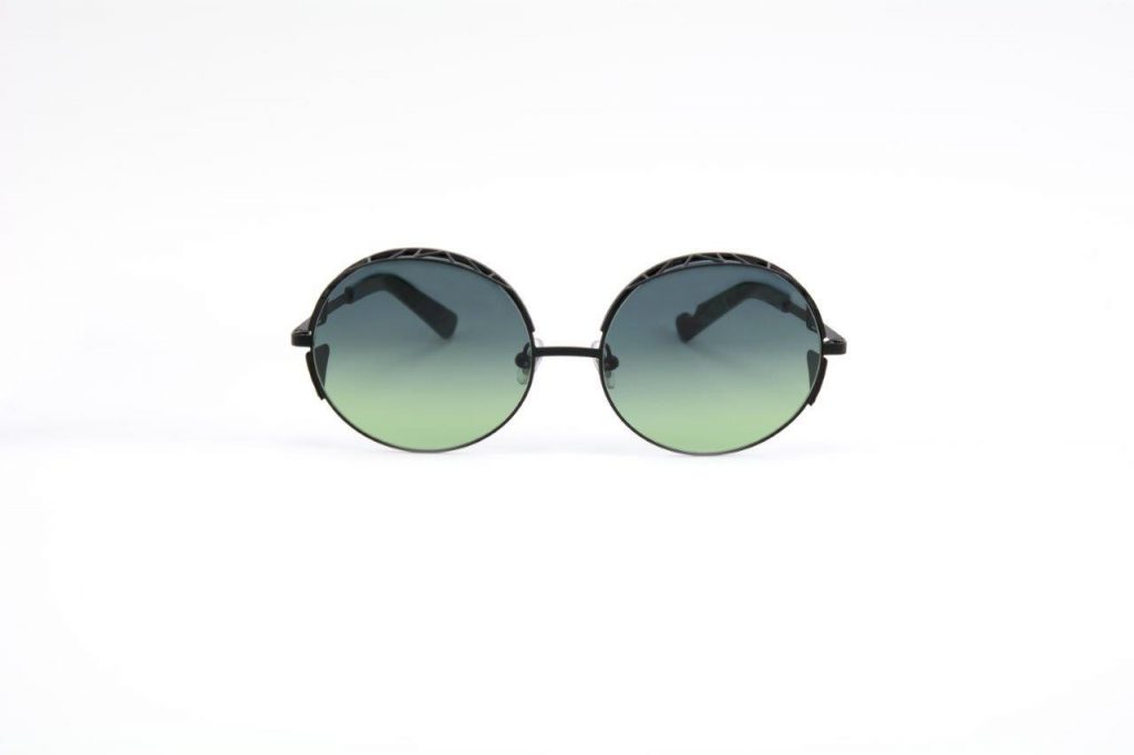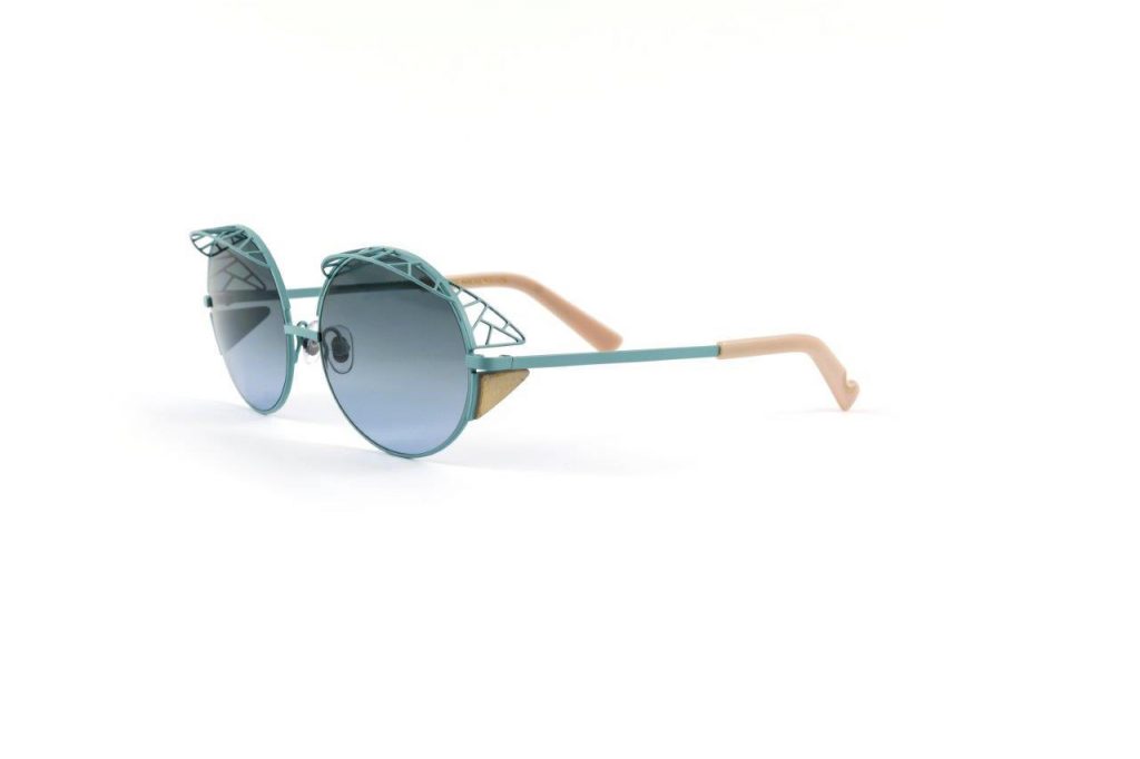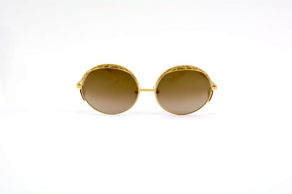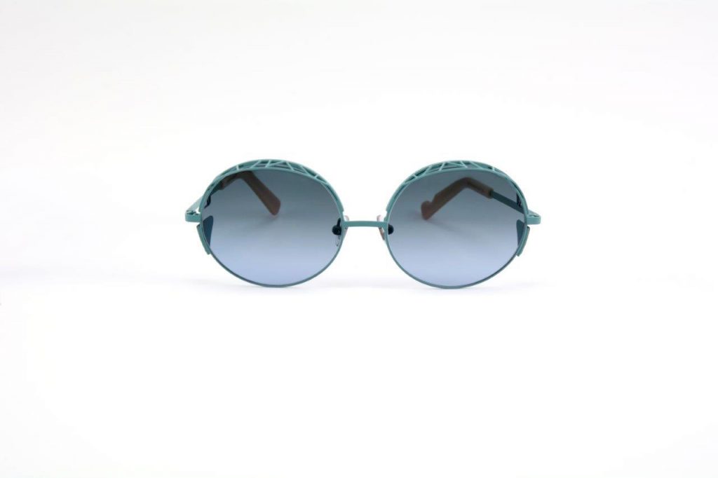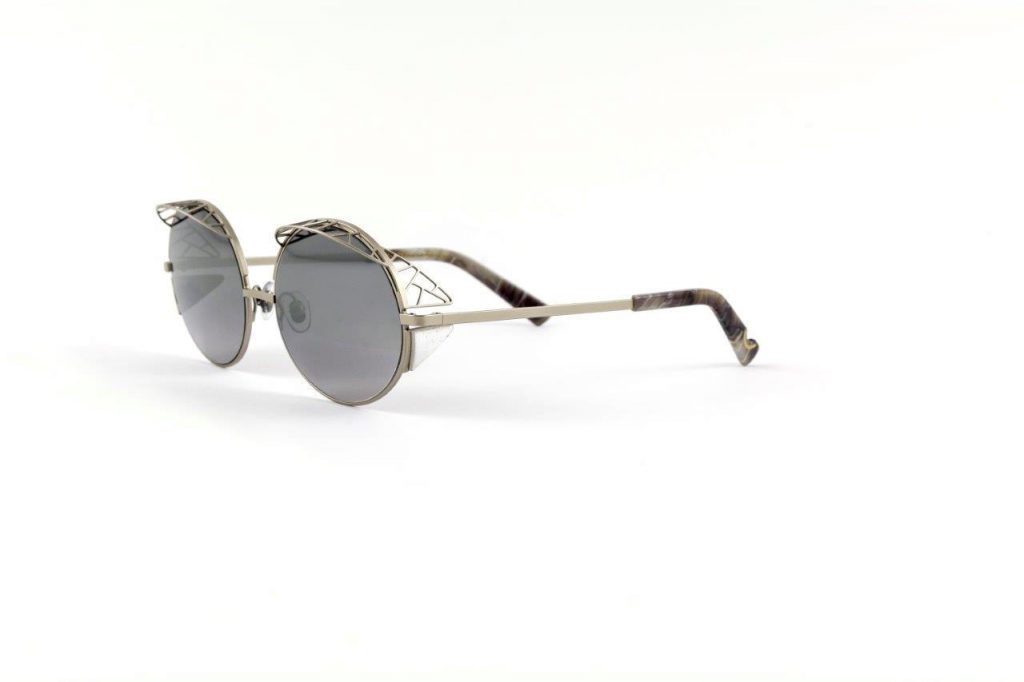 A frame in which Zeiss lenses, treated with blue anti-reflection, are embedded in a metal structure reminiscent of the style loved by Eileen Gray, in which steel dominated. A robust and stable material, but extremely malleable at the same time, able to model itself creating textural virtuosities. The unusual top of this model is composed by an upper protruding part in steel, in which we find the game of solids and voids. This projection, as the mirror image, is reflected also internally, creating a model with blinkers, that brings to mind the aviator model, so linear when viewed frontally, but so complicated if admired laterally.