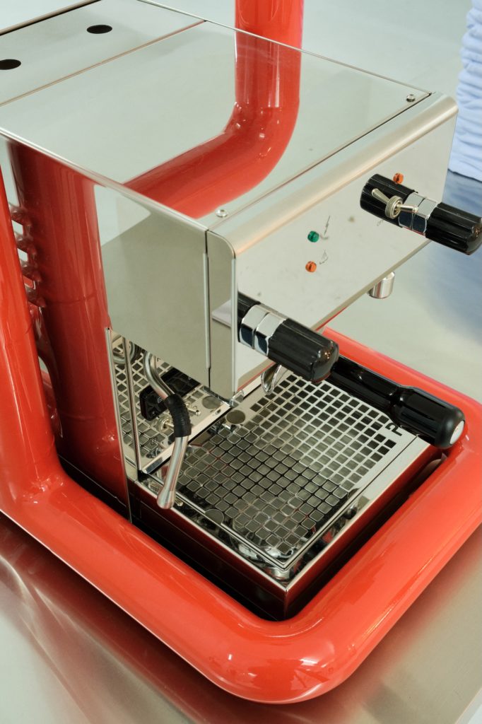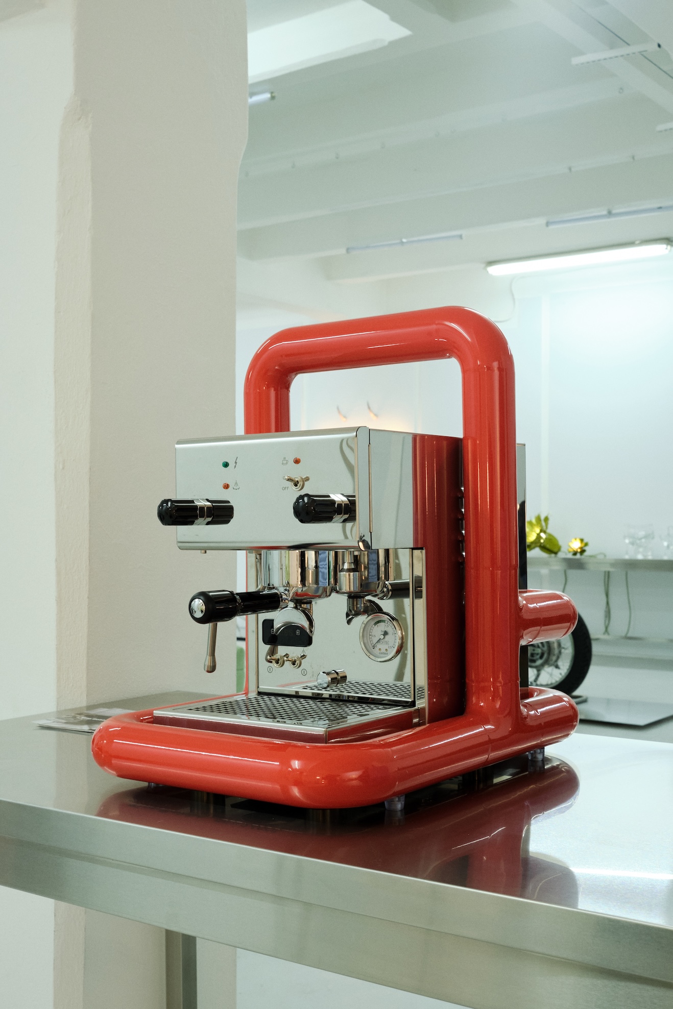 A handcrafted frame designed by Tina Bobbe for a customised espresso machine The Pipe Frame Mini is a handcrafted frame for an espresso machine designed by Tina Bobbe. Made of stainless steel and finished with a high-gloss powder coating, it is available at tinabobbe.com in four colours. The Pipe Frame Mini is made in Germany and fits around the following espresso machine: Profitec Pro 300 (W 255 mm x H 415 mm x D 385 mm without portafilter). Pipe Frame Mini designed by Tina Bobbe Presented during Milan Design Week 2025 by the digital platform DEORON, Pipe Frame Mini was among other design pieces with a fresh perspective, rediscovering its value through a curatorial approach that transcended convention. Pipe Frame Mini designed by Tina Bobbe “Debuting at Milano Design Week felt special”, said Tina Bobbe. “Thanks to everyone who came by. And thank you at Deoron for creating such a magical space with your fine curation.” Made to order The Pipe Frame Mini can be customised in colour and size, to fit other coffee machines in 5–8 weeks. Dimensions of the Pipe Frame Mini: W 390 mm x H 528 mm x D 553 mm Tian Bobbe with her Pipe Frame Mini at Deoron exhibition Tina Bobbe Tina Bobbe is a German product designer and visual artist. She is known for her distinctive use of artificial intelligence to create visuals of colourful still lifes and playful objects. Inspired by the bold design trends of the 80s in Italy, Tina Bobbe rethinks the design of everyday objects, such as coffee machines, and transforms them into bold and beautiful sculptures. Her first available objects, ‘Pipe Frame’ and ‘Pipe Frame Mini’, turn classic espresso machines into iconic works of art. Each piece is handmade in Germany.