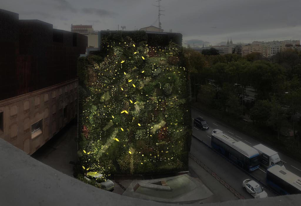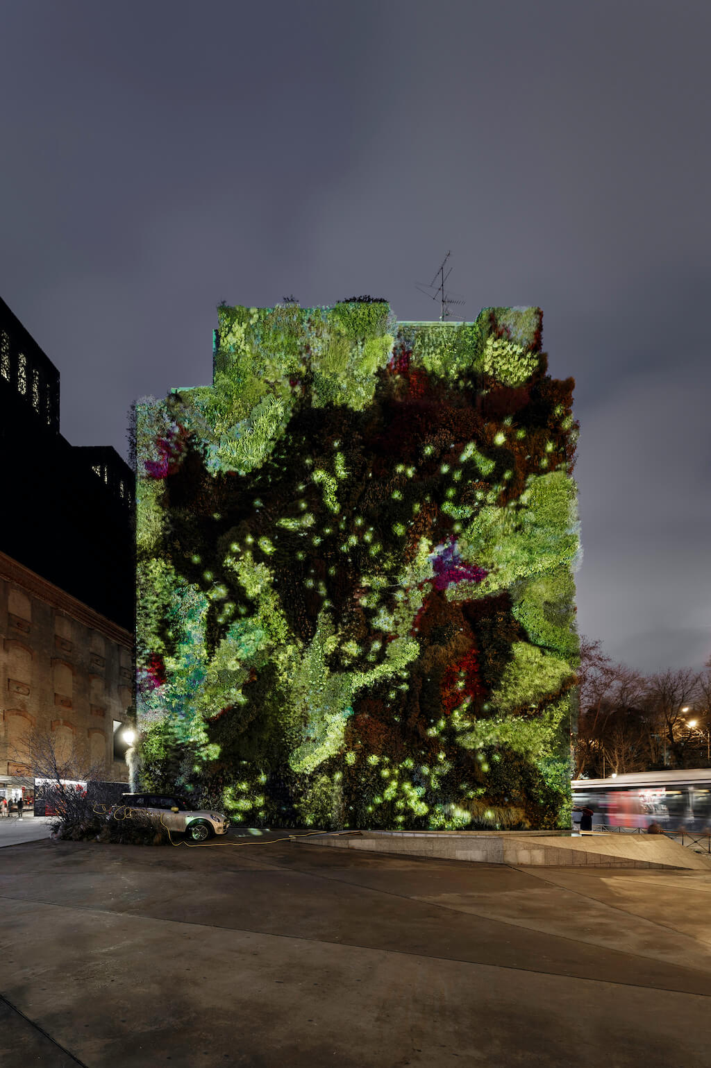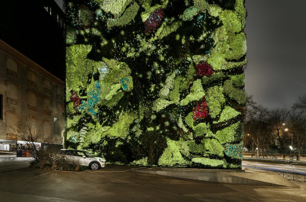 Light installation Electric Green designed and managed by Mayice on the Caixa Forum’s green wall is a project for MINI, promoted by La Fábrica and the Madrid Design Festival, that makes us reflect on nature and the importance of urban forests in cities. A healthy natural environment contributes to healthier and more sustainable cities. The scientific world has recently determined that humans are primitive beings and that we need to spend at least a few hours a week surrounded by nature and trees. Right now, a high percentage of people living in cities don’t meet this minimum requirement. We spend more time with technology than we do with nature.From January 29 to February 16, Caixa Forum’s vertical forest came alive everyday between 19:00 and 23:00. An immersive relaxing experience that makes us reflect on nature, its beauty and the need for its protection. The energy of this place and the installation itself, created a light show in dialogue with nature, involving the least possible materials and energy use.A video-art piece based on animated lights that travel and dress, accompanied by forest sounds, Patrick Blanc’s vertical green wall adjacent to the Caixa Forum building, designed by architects Herzog & De Meuron. The wall’s own multi-species pattern comes alive through an animated photograph taken on a sunny day in December.The arrival of the electric MINI to the city helps reduce CO2 emissions and noise pollution, thus contributing to the protection of nature and enabling healthier cities. During the day, the electric MINI recharges with clean energy, so that during the night it can project moving lights that move around the Caixa Forum’s green wall.