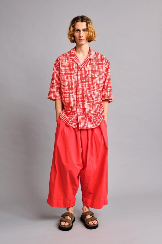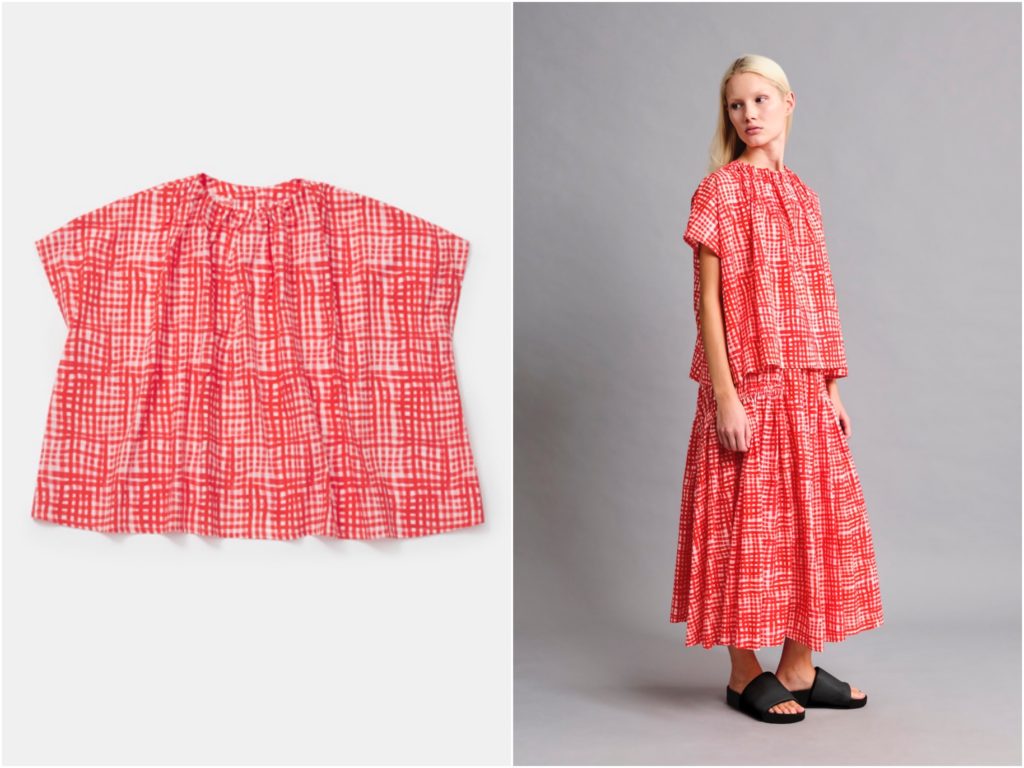 The original artwork from Toogood’s Summer collection draws inspiration from the iconic red gingham curtains found in traditional British cafés. A tribute to everyday beauty — real clothes for real life The original artwork from Toogood’s Spring/Summer 2025 collection draws inspiration from the iconic red gingham curtains found in traditional British cafés. A tribute to everyday beauty — real clothes for real life. This painterly check in bright jam is printed on a light cotton lawn. As always, the collection showcases sculptural silhouettes crafted from high-quality fabrics — clothes that speak of form, function, and feeling. The Poet Top: softly gathered at the neck, it falls loosely just below the waist. The Harvester Skirt: gathered and gracefully sculptural. The Landscaper Shirt: a loose, boxy fit for an effortless summer look. Toogood is a London-based design studio founded in 2008 by Faye Toogood, recently awarded Designer of the Year at the ELLE Decoration International Design Awards 2025. With a practice that transcends categories, Faye and her team create timeless pieces across fashion, interiors, furniture, including the iconic ‘Roly Poly’ chair, and homeware. The fashion line was co-founded by Faye and her sister Erica Toogood. Each garment embodies their shared vision: Faye’s material sensitivity and Erica’s daring approach to volume and shape. One a tinker, the other a tailor. Craftsmanship and the celebration of trades are at the heart of the brand. Every piece is named after a traditional profession — from the ‘Metalworker’ Jacket to the ‘Stonemason’ Trousers — telling stories through design. Since 2013, best-selling silhouettes like the Photographer Jacket, Baker Trouser, and Draughtsman Shirt have become modern Toogood icons. A signature “passport” label is sewn into each garment, recording all hands involved in its creation — from the designers to the cutters, sewers, and pressers — with space left for the wearer to add their initials and continue the journey. At the core of every Toogood project lies a spirit of curiosity and experimentation. Designers, sculptors, carpenters, and interior specialists cross disciplines to shape objects and clothing that are bold, artistic, yet resolutely made for daily life.