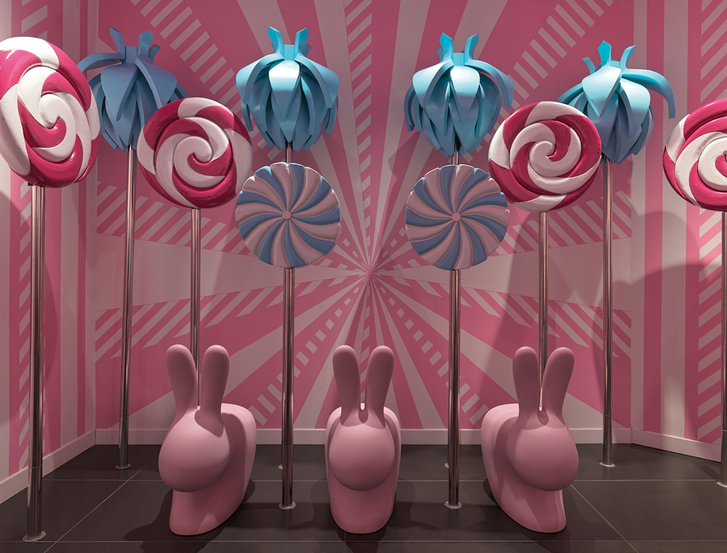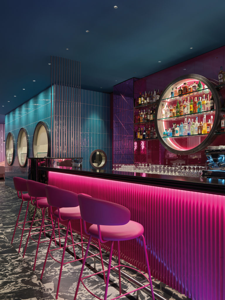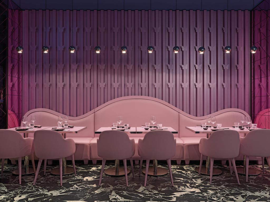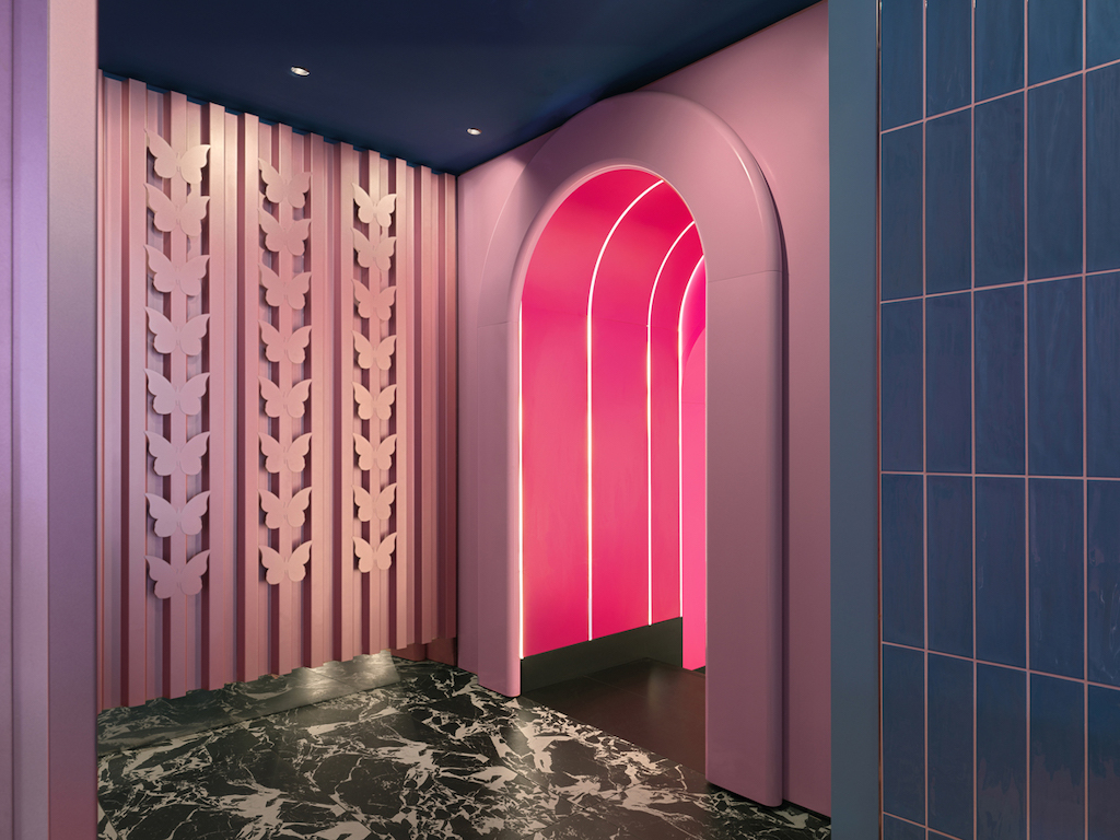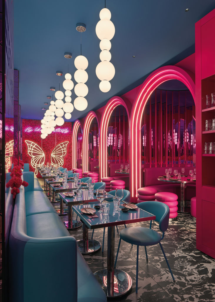 Charisma and fun for a sushi restaurant and cocktail bar in Rome with a dreamy atmosphere that draws inspiration from the tale Alice’s Adventures in Wonderland, to create an experience with a strong emotional impact The new sushi restaurant and cocktail bar Tako in Rome is a project created by the interior design studio COLLIDANIELARCHITETTO that invites you to dream: arches and niches, furnishings wrapped in reflective and vibrant surfaces welcome customers in a harmonious and playfully provocative environment. A kaleidoscopic tunnel of colored arches with lines of light that multiply to infinity a perspective chased down towards the magical world of Alice, in which everything arouses amazement: the walls are wrapped in pink and white wallpaper with dynamic geometry, while macro decor elements such as butterflies, flowers, rabbits and lollipops define a pop identity, in a careful and calibrated staging of colors and shapes. Opened in the year of the rabbit, a symbol of luck, prosperity, and creativity, Tako draws inspiration from the tale Alice’s Adventures in Wonderland, to create an experience with a strong emotional impact, at the same time charismatic and carefree; multifaceted, and dreamlike, it is a colorful dream played out in macro-proportions. Butterflies, flowers, lollipops, and rabbits populate an environment where food and design blend together to bring to life an emotional, timeless, and ageless experience that remains imprinted in the memory of its guests. “I dreamed of creating a place where you can feel free to express yourself to detach yourself from the concreteness of everyday life, to enter a fairy tale, a magical and extravagant environment in which people of all ages can travel with their imagination. When you enter Tako you are captivated by the colors, the lights, the details, everything is emotion and amazement,” says Daniela Colli, at the helm of the COLLIDANIELARCHITETTO studio. A place with an irreverent and unconventional soul, which invites you to make your own playful and dreamlike dimension of life. Tako has an eclectic and visionary atmosphere, played on the edge of fun, located in the heart of Ostiense, a Roman neighborhood with a strong industrial identity, once dominated by an electrical power plant, a river port, and a gasometer, today among the most interesting places for lovers of street art and underground culture, frequented by university students and international tourists in search of gourmet dining experiences. The project is revealed on two levels. The ground floor, which has eight large windows overlooking Via Ostiense, houses a space with 160 seats, the kitchen, and the cocktail bar, where customers are welcomed, dominated by a monolithic mirrored cylinder and an L-shaped counter with a black absolute marble top, covered in magenta press-bent metal while a macro circular bottle holder with polished steel details stands out against a background of iridescent pink glass, creating a dreamy atmosphere. The sushi bar, with its large portholes, wrapped in a fluid enameled surface that recalls the movement of water, constitutes the connecting element between the two areas of which the venue is composed. On the right is the main space of the restaurant, a fluid environment where mirrored surfaces and metal coverings flutter above the floor with large black and white fragments. It is characterized by a variety of seats and tables and conceived according to the color block principle with pink, magenta, cyan, and Klein blue colors. A fluid space that culminates in a backdrop of tapered arches in relief, emphasized by lines of light that enclose semicircular niches dressed with mirrors, sofas, and tables in total magenta. Luminous pearls, like bubbles floating in the air, create a suspended and light atmosphere, emphasized by the multiplication of reflections on the mirrored surfaces and metal coverings. On the other side, to the left of the sushi bar, there is a more intimate area, which offers macro sofas, armchairs, and tables playing in delicate shades of pink, which stand out against metal walls with decorative micro butterflies. A pink lacquered arch with bold proportions marks the passage between the two floors used for various functions; a staircase leads to the basement which houses the customer services and technical areas. COLLIDANIELARCHITETTO Is a multi-award-winning architecture and interior design studio, founded in Rome in 2009 by Daniela Colli. The ability to combine the contemporary vision of society and its needs with the historical and cultural roots of interior design is the distinctive feature of projects that mix past and future. Its activity ranges from furniture to interior design and urban architecture, with particular attention to detail in the design and construction phases. The COLLIDANIELARCHITETTO studio uses the challenging elements of each project – including the peculiarity of the site, the target, and the needs of the client – as a catalyzing element of its continuously evolving architecture. Appreciated by international critics and considered a specialist in the hospitality sector, it creates projects ranging from bars to cafes, from restaurants to hotels and spas.