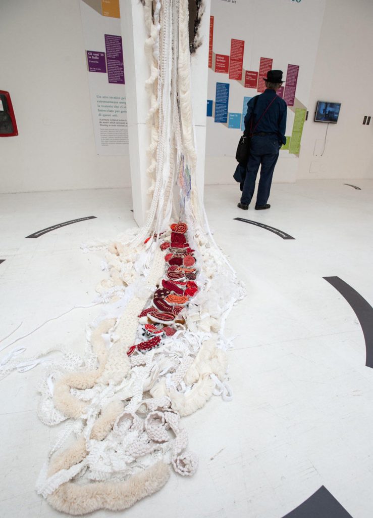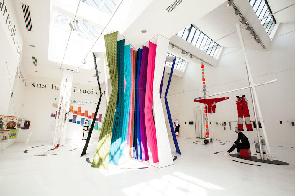 During the days of the Milan fashion week, a question was raised by some journalists concerned about how in Italy, unlike other countries which in the same way benefit from costume and fashion design, there is a significant gap in the exhibition field: exhibitions that celebrate not only the designers who have built the history, but also informing on tradition and on the evolution of costume. It is exactly there that goes to act an important initiative, an exhibition staged at the Triennale di Milano from September 11 to November 9. It is Textile Vivant, curated by Eleonora Fiorani, Giovanni Maria Conti, Maria Grazia Soldati and Barbara Del Curto, who decided to start from the most basic beginning of what constitutes fashion, meaning going to inform and enlighten on textile. An educational path which has the dual task of teaching to who doesn’t know and to impress those already in the industry. Texile Vivant stands as a guide in the discovery and development of textiles, allowing fabric itself to do the talking, accompanied only by synthetic and intuitive graphical explanatory maps for the construction of a path that goes into immediate empathy with the public. Here are analyzed the historical evolution of the fabric, the taxonomy and the production cycle, illustrating how it permeates every aspect of our daily life and how little we know about it. Large structures in hyperbolic scale shows instruments with which the fabric is produced to wonder the spectators, while the collaboration with important brands shows the ongoing research into the processes that allow the fabric to take on unexpected technical properties, straight to the construction of real works of art, that from textile take inspiration and substance.