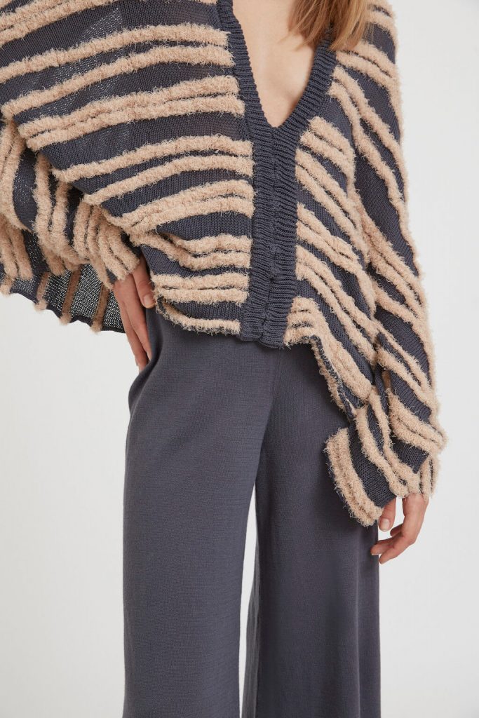 Pedra is the Catalan generic term for stones, rocks and gems. Nature has taken thousands of years to conform to these minerals, layer by layer. Each vein brings the memory of Time. A mixture of power and calm beats in their core: they radiate energy. Humans have heard their call, have been carried away by their attraction. And Ester Ferrando has felt their magic and created, PEDRA a knitwear collection that turns the hardest materials into the softest garments and that translates this inspiration into textures and jacquards, into empowering fashionable designs. Pedra Collection Locally manufactured her creations go beyond the established trends, they adapt to more than a single season and embrace every silhouette. Collection by collection, Ester Ferrando’s proposals transform knitwear into an artistic expression. Volumes, colours and shapes -for men, women or both- naturally traverse seasons and upgrade personality in style. Knitwear is Ester Ferrando’s speciality and it is, naturally, the prevailing material for the brand. Her proposals are formed by total looks that flow around who’s wearing them. Ester Ferrando’s designs are the fruit of a multicultural inspiration and reflect her own personality and concerns. Every garment is produced in Catalan ateliers for the entire world, that is well-known for its specialization in knitwear. Passionate, curious, creative, Ester Ferrando says: “Using knitwear, I am weaving my own dreams and translating my inspirations into designs: turning everyday garments into something unique.” Since 2012, she leads her own label, ESTER FERRANDO KNITWEAR, a project that weaves and expresses her creativity. From a very young age, she investigated both crochet and knitting techniques. In fact, when she finished her training at the School of Arts and Techniques of Barcelona EATM-ESDi, she specialized in knitwear and graduated with honours at the Winchester School of Arts (United Kingdom). After her first professional experiences at Pineapple Studios (London) and Studio Orta (Paris), Ester Ferrando came back to Barcelona and opened her atelier, where she worked for designers such as Josep Font, Pedro Morago or Georgina Vendrell and fashion brands such as Cortana. poncho