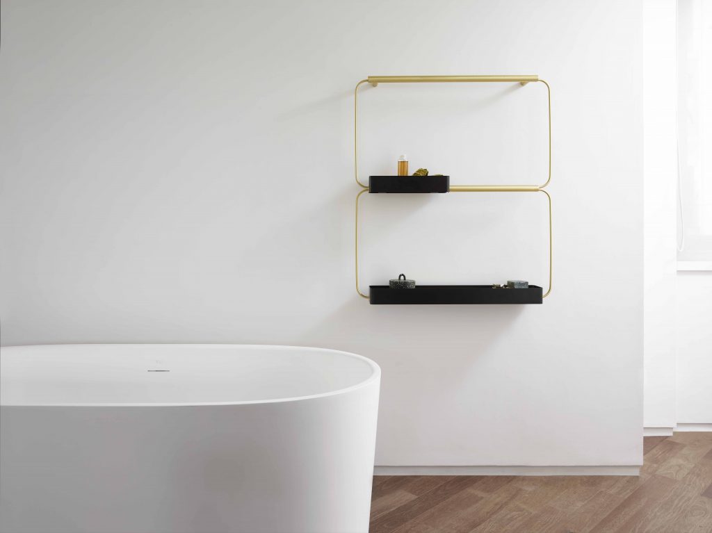 During the winter edition of Maison & Object in Paris Ex.t, Italian brand specialised in bathroom ware & accessories showcased Nudo; a multifunctional modular system brainchild of the first collaboration with Spanish design studio MUT. Ex.t introduced the multifunctional wall mounted or hanging system designed by Spanish designers and founders of MUT studio Alberto Sànchez e Eduardo Villalòn. Featuring different modules in two dimensions and a light airy metal structure available in black and brass, Nudo is a versatile object conceived to meet many interior requirements. A series of accessories like mirrors, container trays and different leather pockets complete the composition turning Nudo into a functional dividing panel as well as a shelving system; towel hanger or a vanity mirror depending on your needs. At the same time, Ex.t launched a series of new editions of its infamous collections Frame and Stand, along with a new finish for Felt shelving system, Hang seating and Rest pouf. All signed by Danish studio Norm Architects. Ex.t presented an exclusive brass and bronze edition of the original Frame, modular furniture system winner of EDIDA prize 2017 for bathroom category designed by Norm Architects. Brass & bronze finish, smoked oak and Navona travertine are the features chosen to complete the collection along with the classic finish of black matte metal, LivingTec® solid surface and Serena stone. As well as Frame, also Felt grid is unveiled in a new brass edition. Embodying a Nordic attitude with the Italian core of traditional craftsmanship, the collections are made to meet the needs of a design & interior industry which is always looking for versatile bathroom furniture. EX.T was born in 2004 by the third generation of historical Tuscan company Giulio Tanini. The mission of the brand is to deliver innovative, original and top quality solutions for a new concept of a bathroom that goes beyond its traditional parameters for both residential and commercial.Founders Azzurra & Ingrid Tanini run a team made entirely of women creating a brand which mixes technologies and materials with the traditional Italian expertise in the use of techniques and craftsmanship. A selection of talented international designers is chosen by Ex.t for their fresh approach, to create products where the traditional roots of Made in Italy live together with latest design trends and innovative materials.