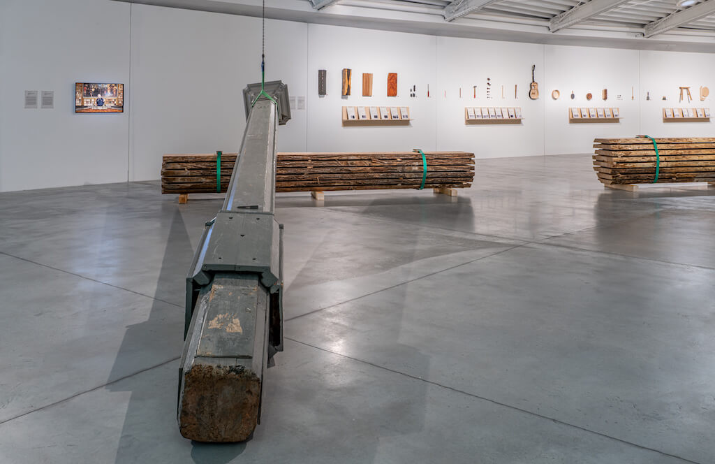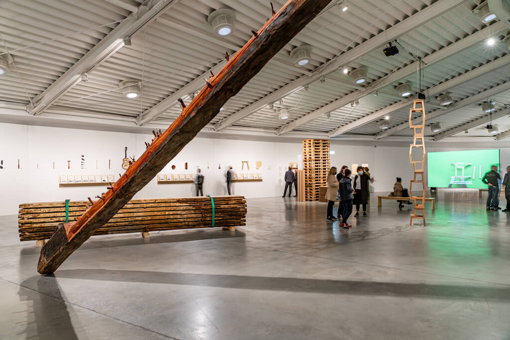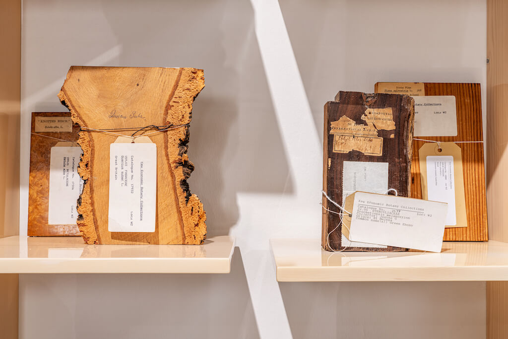 The exhibition shows rare hardwood specimens displayed for the first time at the Great Exhibition of 1851, and continues with furniture and seating designed by Studio Formafantasma, all made from a single tree uprooted by Vaia, the storm that struck northern Italy in 2018.
