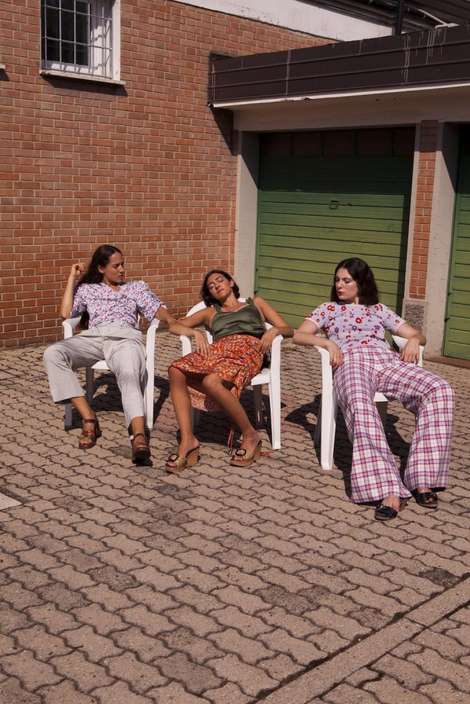 Marco Rambaldi starts from old postcards of the ‘60s and’ 70s sent from who knows where to who knows who to reconstruct an imaginary fake lightness in which the carefree summer makes you forget the political passion, commitment, reality precisely.An imaginary made up of old jagged wallpapers, bodies sunk in the sun like ants and little flowers as naive as they are fakes that clash with the graphics of the posters of political parties. The reconstruction of an imaginary that is as light as it is obsessive.The goal is to dig under the chapped skin of tan from Rimini to regain lost political consciousness, personal and social commitment by re-reading a lesson that is historically not far from us and that is being repeated every day before our eyes.The Collection