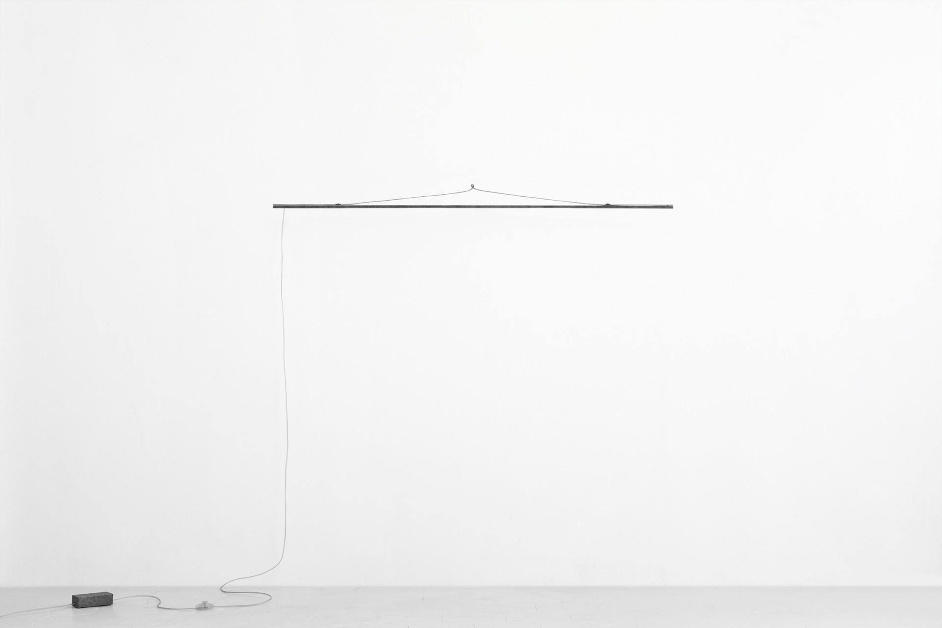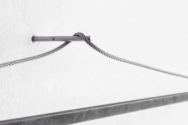 The piece – which was initially created for the ‘Legacy’ exhibition curated by Alice Stori Liechtenstein at Schloss Hollenegg – originates from Poletti’s interest for simplicity and reduction, which led to a construction built through the simple gesture of a torsion, where a loose steel cable becomes structural by being twisted.
