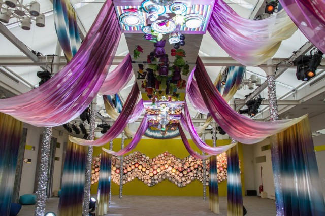 Devo ammetterlo: mentre camminavo per le stradine di Brera diretto verso via Solferino, ero piuttosto euforico. Un mio collega mi aveva appena scritto: “vieni qui, è bellissimo!”; e in fondo si sa, Missoni sforna sempre idee meravigliose, che si tratti di presentare una collezione di prêt-à-porter, o una nuova linea per la casa. E difatti le mie aspettative non sono state deluse: al mio arrivo ho trovato lo showroom del brand trasformato in un luogo fiabesco e surreale. “Wonderland” é appunto il titolo dell’allestimento creato dallo studio milanese AAAHHHAAA, che riunisce in un mix magico e psichedelico prodotti delle linee Missoni Home e Missoni by Richard Ginori; ecco quindi tavole imbastite sospese, coloratissime tende, tappeti e pouf dalle tinte sgargianti, sfere iridescenti, motivi geometrici e ammalianti intrecci floreali. L’emblematico zig-zag della maison é stato poi riproposto grazie all’accostamento di infinite porcellane di colori e fogge diversi, in una composizione tridimensionale senza precedenti. Ieri sera il cocktail-party d’inaugurazione, che ha visto presenti oltre alla famiglia Missoni, anche Anna Dello Russo, Inge Feltrinelli, Marta Ferri, Harumi Klossowska e Yvonne Sciò.