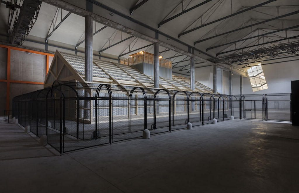 Commissionata da Fondazione Prada per la sede di Milano, l’imponente installazione multimediale “Whether Line” è il nuovo progetto espositivo concepito da Lizzie Fitch e Ryan Trecartin che sarà possibile visitare fino al 5 agosto 2019. E’ il risultato di un processo creativo, intrapreso alla fine del 2016, con lo scopo di realizzare un nuovo film che indaga il concetto di terra promessa e l’instabilità intrinseca in ogni territorio. Partendo dall’idealizzazione della condizione rurale, mutuata dalle ideologie di “ritorno alla terra”, il progetto rende labili i confini tra diverse esperienze e forme di narrazione, quali il film, la mostra di video e le installazioni, i giochi da tavolo e i videogiochi, i parchi di divertimento e tematici, gli eventi pubblici e sportivi, i parchi giochi e gli skate park, le giostre, i labirinti, i percorsi a ostacoli, fino alla fruizione di contenuti audio e video in sale d’aspetto e durante le attese in coda prima di entrare in una casa stregata.Per questo progetto Fitch e Trecartin hanno trasferito la propria residenza e le attività dello studio ad Athens, nella campagna dell’Ohio. Hanno concepito il set del loro nuovo film come una mappa stregata: un luogo dotato di una propria volontà e una costellazione di set permanenti che includono un vasto edificio rurale, un fiume artificiale e una torre di guardia, occupata da un cast di personaggi che sono alla stesso tempo soggetti attivi e passivi della mappa.Come osservato da Lizzie Fitch, nata nel 1981 a Bloomington, Indiana: “Il set di Athens è molto diverso dai precedenti per vari motivi. In primo luogo per il legame con gli spazi aperti, tanto che anche l’interno instaura una forte relazione con ciò che c’è fuori. In secondo luogo, è unico perché è costruito per durare nel tempo, non è solo finzione. Vogliamo capire come rendere lo spazio accessibile ai visitatori. La nostra visione a lungo termine include un piccolo programma di residenze che prevede la possibilità di vivere e lavorare in questo luogo unico”.Al fine di spiegare l’intero processo creativo, Ryan Trecartin, nato nel 1981 a Webster in Texas, aggiunge: “L’ambientazione ci ha fatto riflettere sul film in termini più ampi di quanto abbiamo mai fatto prima. A causa del brutto tempo i lavori di costruzione sono andati a rilento rispetto ai programmi. Alla fine, per questa parte di riprese abbiamo dovuto girare accanto all’edificio e modificare molte delle idee che avevamo immaginato su come utilizzare il set. Abbiamo avuto anche tanti problemi con i vicini. Da qui sono nati i contenuti che riguardano i concetti di territorio e proprietà e che si sono poi mescolati alle prime idee che stavamo già esplorando. L’atmosfera del film è diventata più cupa sotto molti aspetti… anche se in realtà le difficoltà e gli ostacoli che abbiamo dovuto affrontare sul campo sono stati un enorme regalo, perché ci hanno consentito di ampliare la struttura concettuale del progetto”.Gli artisti modificano gli spazi attraverso dislocazioni di tempo e memoria per esplorare la nozione di frontiera e limite esistenziale, psico-sociologico e fisico. La stessa ricerca struttura anche gli sculptural theaters (display abitabili dagli spettatori) concepiti per il Podium, il Deposito e gli spazi esterni della Fondazione Prada, dove gli artisti realizzano un intervento immersivo in cui i visitatori si muovono tra costruzioni e oggetti, seguendo un percorso univoco e in parte forzato. Nella mostra echi sonori e visivi della natura e della vita quotidiana si uniscono a distorsioni di spazi ed esperienze familiari, come trovarsi in un luna park, in uno zoo o in un edificio pubblico, o camminare in corridoi guidati da strutture di limitazione e reclusione, ampliando i contenuti narrativi, i temi e le atmosfere dei video che fanno parte dell’installazione e del nuovo film in lavorazione. “Whether Line” mette in gioco il desiderio di un’esperienza cinematografica coinvolgente, in cui il pubblico possa avere una certa possibilità di scelta e di azione, essendo allo stesso tempo spettatore e protagonista.Il progetto è accompagnato dalla prima retrospettiva completa che riunisce 21 film di Ryan Trecartin. “The Movies” precede l’anteprima mondiale di Whether Line, il nuovo lungometraggio girato in Ohio. Fin dalle loro prime produzioni realizzate nel 2001, Trecartin si occupa della scrittura, della regia e del montaggio, contando sulla stretta collaborazione di Fitch in un ruolo fluido che va dall’impersonare personaggi principali alla realizzazione dei set e al coordinamento generale. Lizzie Fitch e Ryan Trecartin lavorano in stretta collaborazione dal loro primo incontro alla Rhode Island School of Design nel 2000. Da allora i risultati della loro pratica collaborativa sono stati esposti in numerose mostre organizzate da importanti istituzioni internazionali come: Whitney Museum of American Art, New York, USA (2006); MoMA PS1, Long Island City, USA (2011); Musée d’Art Moderne de la Ville de Paris, Francia (2011–12); Biennale di Venezia, Italia (2013); KW Institute for Contemporary Art, Berlino, Germania (2014–15) e Astrup Fearnley Museet, Oslo, Norvegia (2018).