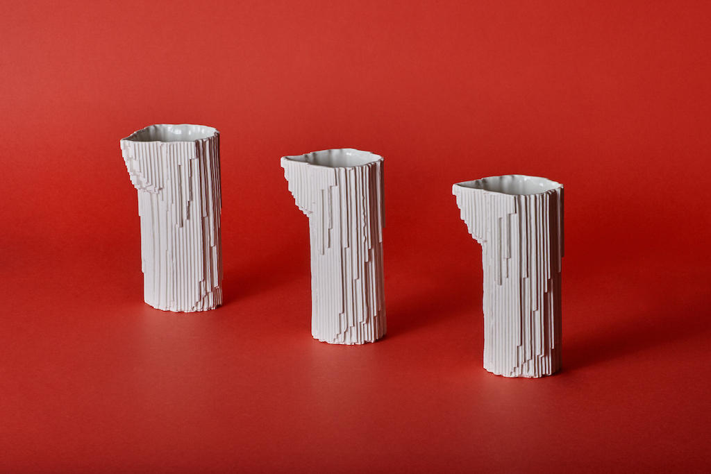 Miguel Giner Gutiérrez è il vincitore dei Rado Star Prizes Spain 2019 – la cui premiazione si è svolta a Madrid durante il Madrid Design Festival – con il progetto Petra, una collezione di stoviglie di porcellana. La progettazione e produzione del set per la tavola in porcellana e dei vasi in silicone attraverso lo stampo polimerico basato su profili è il progetto finale di laurea – intitolato “Workshop Vertical Design, Local Development” – del giovane designer spagnolo alla FAAD Facultad de Arquitectura, Arte y Diseño dell’UDP Universidad Diego Portales di Santiago in Cile. Il Cile è un paese senza industria e con un’enorme capacità artigianale, ma i mestieri legati all’artigianato sono scollegati dai bisogni della società e si trovano in uno stato di stagnazione. L’obiettivo era ossigenare l’artigianato attraverso l’innovazione nel design attraverso la sperimentazione di forme, materiali o processi produttivi. “Durante tutto il corso ho lavorato sulla ceramica e in particolare sull’uso delle forme naturali” ci ha detto Miguel Giner Gutiérrez. “Ho sviluppato molte proposte in cui, attraverso gli stampi di elementi della natura e sfruttando la loro forma ergonomica naturale, sono stati poi realizzati dei pezzi. Le proposte non erano ancora sufficienti ma mi hanno permesso di vedere trame e possibilità praticamente in ogni elemento analizzato. Infine, un giorno al supermercato, grazie a questa nuova prospettiva, ho potuto vedere negli spaghetti una trama e un sistema che consente un’infinità di configurazioni, è così che ho sviluppato la logica dello stampo polimerico ed ho elaborato il mio primo prototipo. Una volta tornato in Spagna ho continuato a studiarne la logica e ne ho fatto il mio progetto di laurea“.Lo stampo polimerico consiste in uno stampo formato da 3906 barre di faggio, impilate orizzontalmente con un sistema di fissaggio. Le aste vengono estruse manualmente creando forme, quindi dalla forma negativa vengono creati gli stampi e i pezzi. La macchina consente di creare forme naturali attraverso un’arbitrarietà limitata legata ai profili utilizzati (forma, dimensione e trama). “Ho sperimentato la termoformatura, il vetro soffiato, la tecnica di svuotare la ceramica e l’uso di siliconi. Il silicone in crema, ad esempio, consente di creare pezzi senza limiti formali, veloci e con costi molto bassi. Inoltre, mantiene il carattere artigianale di oggetti unici e irripetibili. Alla fine ho sviluppato il prototipo corrente del Polymorphic Mold, che mi ha permesso di produrre pezzi diversi e di creare nuove linee di ricerca e sperimentazione”. Le stoviglie Petra sono state progettate con l’idea di mostrare la versatilità dello strumento attraverso elementi che fanno parte di una stessa famiglia, con dimensioni e forme differenti e che rispondono a diverse funzioni. I prodotti sono stati progettati in base al concetto di relazione del materiale con la natura e il tempo. “L’uso di forme puramente organiche con una trama ricorda gli strati minerali delle montagne, l’erosione prodotta dall’acqua e dal vento nelle rocce o nelle miniere di sale“, dice Miguel. “L’intento è di rendere consapevole chi le usa dell’origine minerale del materiale e dare valore al prodotto. E’ anche un modo per connettermi con i miei saggi iniziali in Cile. Attualmente sto continuando la mia ricerca e sperimentando. La logica di creare forme attraverso un sistema di profili è una nuova idea che non è stata ancora sufficientemente esplorata e presenta un’infinità di possibilità sia nel design che nell’artigianato o nell’industria“.