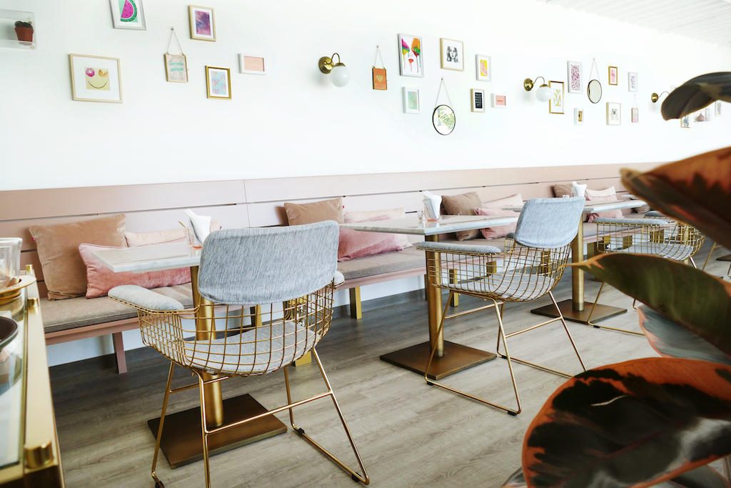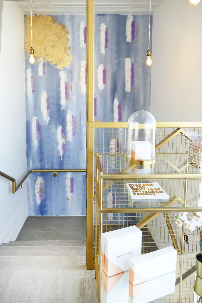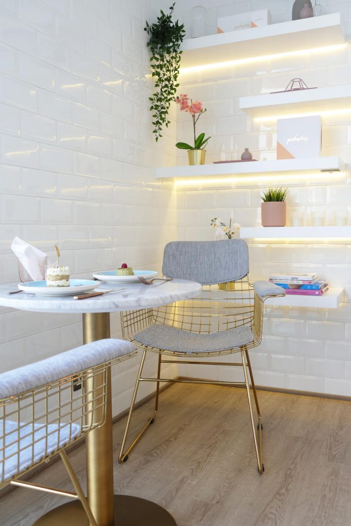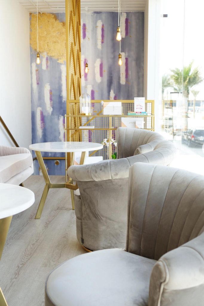 I colori pastello sono stati appositamente selezionati in modo da offrire un contrasto con l’ottone e creare una atmosfera esteticamente gradevole. Inoltre, sono stati scelti diversi tipi di mobili per far sì che i clienti possano rilassarsi e gustare i propri dessert sentendosi a proprio agio.Grazie agli interni curati in ogni minimo dettaglio e agli arredi progettati dalla stessa Maja, che emanano un calore familiare, la vista sul porto di Port Rashid sembra più accogliente. I dettagli in ottone che impreziosiscono il bancone del bar attirano gli sguardi dei clienti che passano. Il telaio che divide la scala presenta anche un tocco di bronzo, perché il tono terroso del metallo lo rende più adatto rispetto ad alternative più lucenti. Il ripiano in marmo del bar, classico ed essenziale, denota l’attenzione alla funzionalità dei progetti di Maja. Un pannello in vetro crea l’effetto di un ampio spazio aperto. Anche per i tavoli ha scelto principalmente il marmo in modo che sembrassero aggraziati ma non fragili, con gambe in ottone che mostrano una perfetta fusione tra pietra e metallo.La parete della scala è decorata con un murale di Amna al Muhairi, mentre i dettagli in foglia d’oro aggiungono un tocco lussuoso all’ambientazione. Gli scaffali alle pareti sono una combinazione di design minimalista e funzionalità salvaspazio. Dal momento che l’interno di pasticceria si affaccia sul porto, le panche con comodi cuscini vogliono ricordare la spiaggia.La pasticceria ha ricevuto il premio “Done By Youth” dal Ministero della gioventù degli Emirati Arabi Uniti. come riconoscimento del contributo di Pastryology al progresso sociale ed economico.Maja Kozel è nata in Olanda e ha frequentato la prestigiosa Accademia di Willem de Kooning dove si è laureata in progettazione spaziale. Questo campo multidisciplinare copre l’architettura, l’interior design, l’architettura del paesaggio, il design di servizi e l’arte. Dopo aver lavorato prima nei Paesi Bassi e poi a Hong Kong, Maja si è trasferita a Dubai, dove nel 2014 ha deciso di mettersi in proprio e di diventare uno dei primi spatial designer autorizzati dal Dubai Design District.
