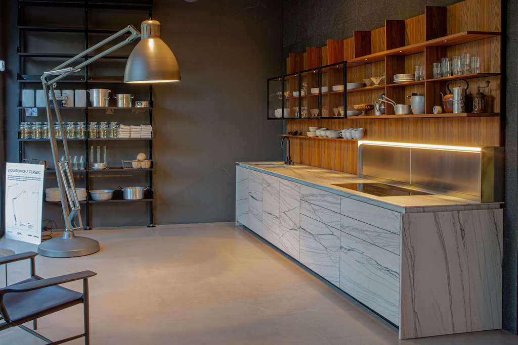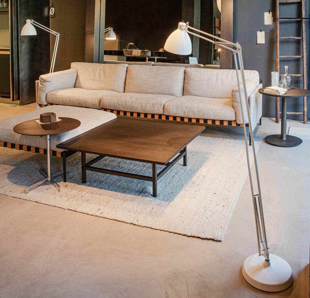 During the Barcelona Design Week ’21, LEUCOS opens at the Boffi | DePadova showroom in Barcelona an exciting collection: the evolution of the JJ family conceived to offer an inspiring range of modern lamps. During the Barcelona Design Week ’21, LEUCOS opens at the Boffi | DePadova showroom in Barcelona an exciting collection: the evolution of the JJ family conceived to offer an inspiring range of modern lamps. From June the 7th to 17th, in the Barcelona headquarter of the Italian company, the JJ will show all the potential of an iconic lamp -designed in 1937 by Jac Jacobsen- the archetype of all task lamps with spring-balanced arms. In 2021, LEUCOS transform the JJ platform into a scalable system of decorative lamps, introducing a full range of product sizes and several customizable options. Starting from the JJ SMALL lamp, available for table and wall. JJ GREAT is a large-scale, matte lacquered aluminum floor and pendant version lamp for indoor or outdoor. Available in white, black, amaranth red, mica blue, sablé grey, and rust-brown, custom colors available upon request. Interior of the diffuser is in white lacquer. The newest size is the JJ BIG, available in the same colours and for outdoor too like the JJ GREAT, with CASAMBI® smart light control. Another newest size and typology is the JJ BIG Grip, born thanks to the collaboration with ALU company, is an adjustable orientable in all directions lamp. The new JJ BIG Grip allows different applications (table, floor, wall or ceiling) thanks to the included “Super Clamp” (an attachment that allows you to connect the lamp to a wide range of locations with either round and rec- tilinear profiles) and using design accessories such as “Autopole” (extendable floor-ceiling tension column in anodized aluminum) and the “Grip Mount”. In 2009, “Autopole” and “Super Clamp” were chosen by the NY MoMa for their permanent design and architecture collections. JJ MID floor lamp in matte lacquered steel with aluminum diffuser – as all the collection- is available also as wall lamp. Depending on the model, JJ lamps are available in E27 (on-off) or dimmable integrated LED (user replaceable) with “touch-dimmer” on diffuser. Photos: Sofia Fernandez Stenström
