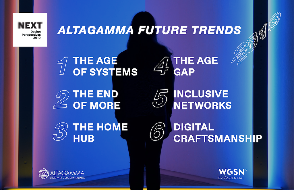 At Gucci Hub in Milan, today October 29, 2019 the second edition of NEXT DESIGN PERSPECTIVES, the design conference conceived by Altagamma, in partnership with ICE Agency and Fiera Milano, revealed six key trends that will have an impact on both people’s lifestyles and businesses.