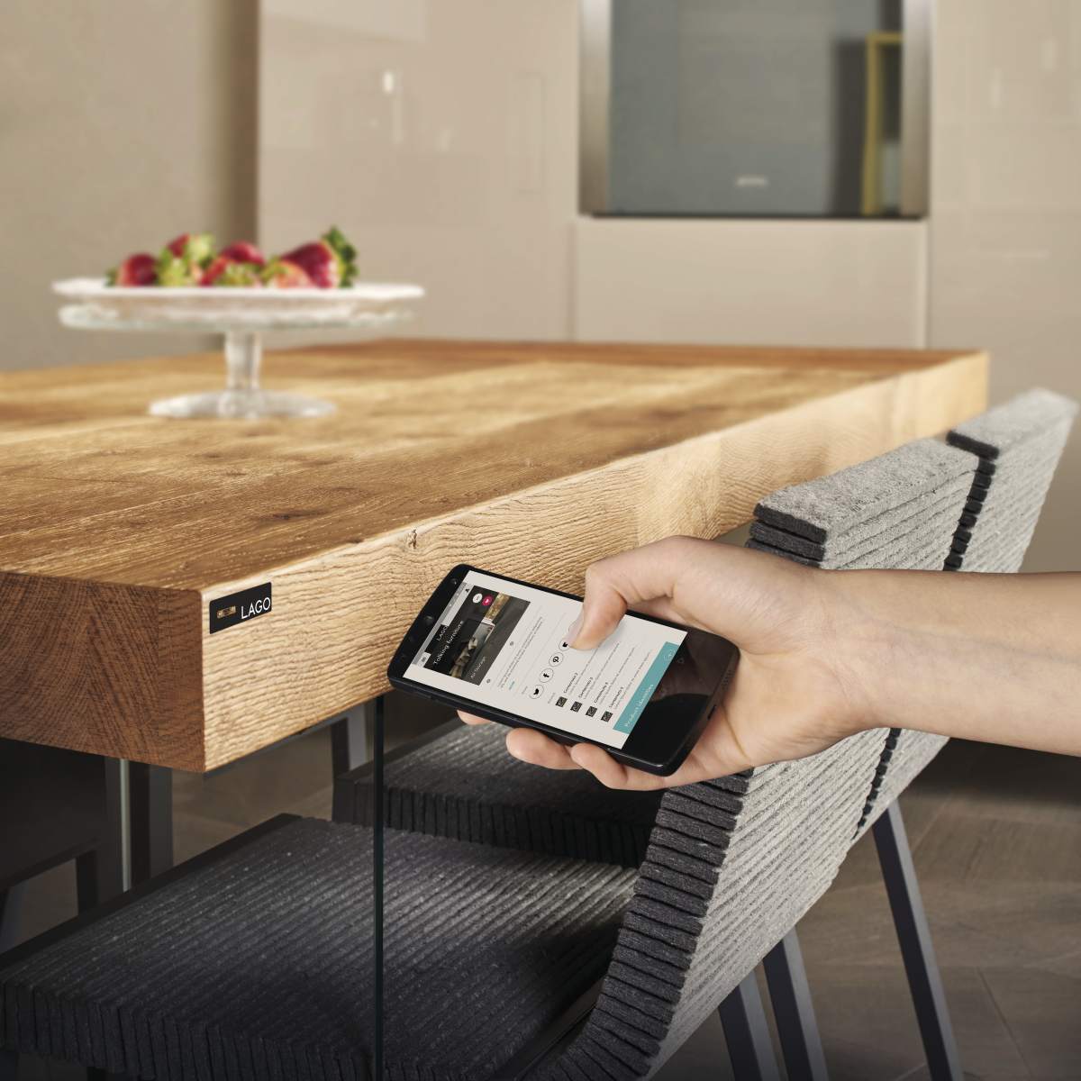 Talking Furniture, the first app in Italy created by LAGO that allows to connect the furniture to its smartphone, received the Smau Innovation Award for Talking Furniture during SMAU Milano 2017. The project, created in 2015, is the result of LAGO’s research on the Internet of Things and aims to create a direct interaction between furniture and people, enhancing and improving the consumer experience. A mobile chip is applied to each mobile device, which, by approaching its smartphone, automatically connects to the LAGO DESIGN application and receives instant information about the product. With the app you can also record photos, audio and video, which create an emotional narration saved in the memory of the furniture.