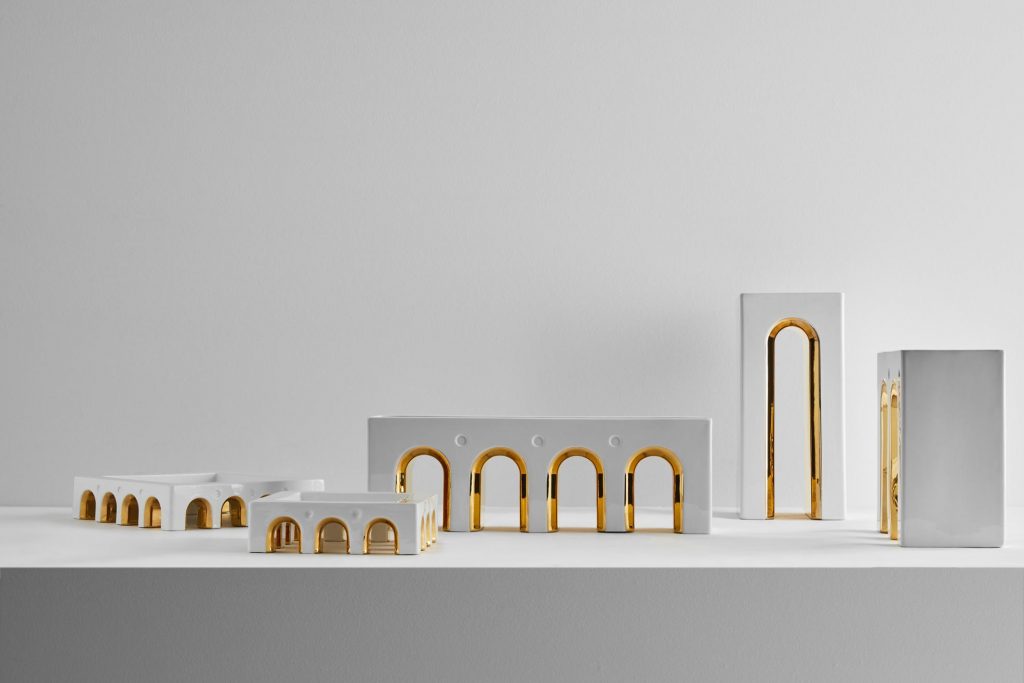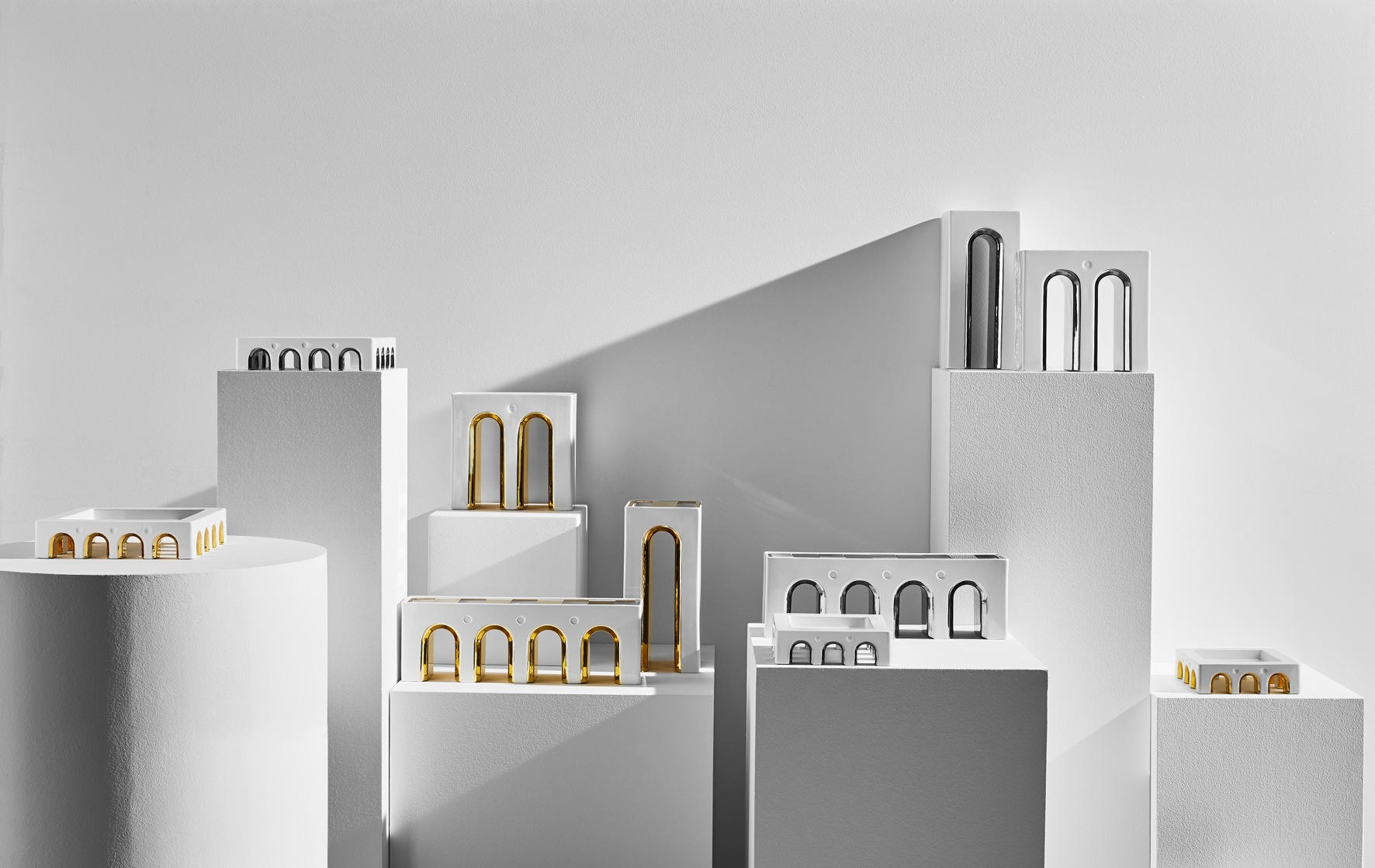 The first collection of objects created by LATOxLATO, the new design lab founded by two young architects, Francesco Breganze de Capnist and Virginia Valentini, is a homage to the history of Italian art and architecture from which it draws its form and inspiration. The juxtaposition translates into an unusual kind of design, full of tangible emotion and possibilities for interaction.Austere candleholders recalling Rationalist masterworks, a centrepiece and flower vases drawing on the perspective and metaphysics of the Renaissance piazza. All rigorously made in Italy, the pieces tell the story of their passion for Italy, its traditional materials and noble artisanal techniques. Marble, ceramic and metal are reinterpreted through a contemporary eye. Each individual piece, unique and inimitable, becomes a magnetic presence, thanks to the strong aesthetic value of its lines, finishes and structural details and to its open, freely-interpretable functionality: it becomes a piece of sculpture.Through materials, LATOxLATO explores the Italian landscape and discovers its finest craftspeople according to an idea of contemporary luxury. Natural and precious materials, 100% Made in Italy craftsmanship and unusual forms inspired by the rich heritage of Italian art and architecture. A subtle allusion to Italy’s Palladian villas and palaces, and to the perspectives of Metaphysical art. The detailing in precious 24k gold or platinum creates reflections of light and motion in perspective. Austere and perfectly proportioned arches multiply within the vase: one arch corresponds to two containers, two arches to four, and so on, allowing for the composition of ever-changing and dramatic floral arrangements. LATOxLATO’s first collection was born out of a love for Italy and Italian culture. This is reflected also in the names chosen for the vases and the centrepiece: references to the great actors of Italian cinema.The LATOxLATO design workshop was founded in 2018. Wanderers by calling and Italians by birth, Francesco Breganze de Capnist and Virginia Valentini are partners in work and in life, sharing a deep creative and inquisitive bond. In 2016, they opened their studio Spazio Primario in New York and worked on numerous projects, including retail space in Brooklyn, a bar/restaurant on Coney Island and various private residences on the Upper East Side. This experience abroad, which they continue alternately with their work in Italy, inspires them to invent out-of-the-box designs. Their passion for their roots, for Made in Italy artisanship and the rich heritage of Italian art and architecture blends together with an international and multicultural attitude.