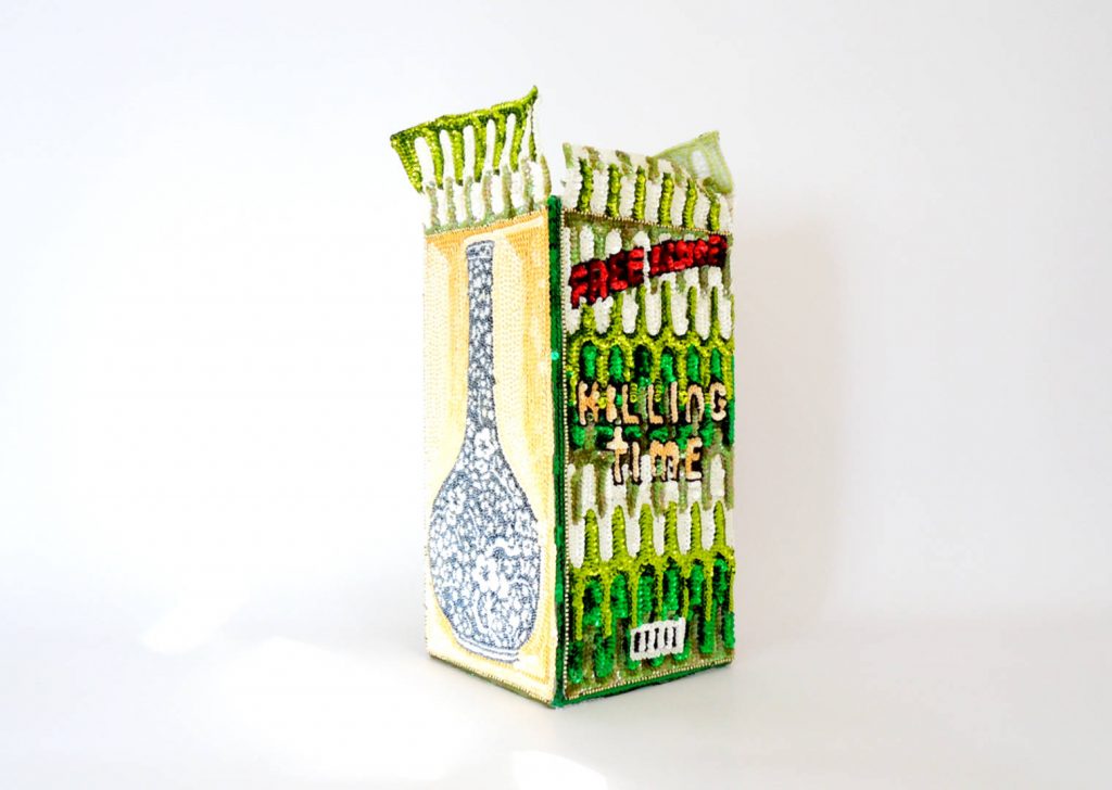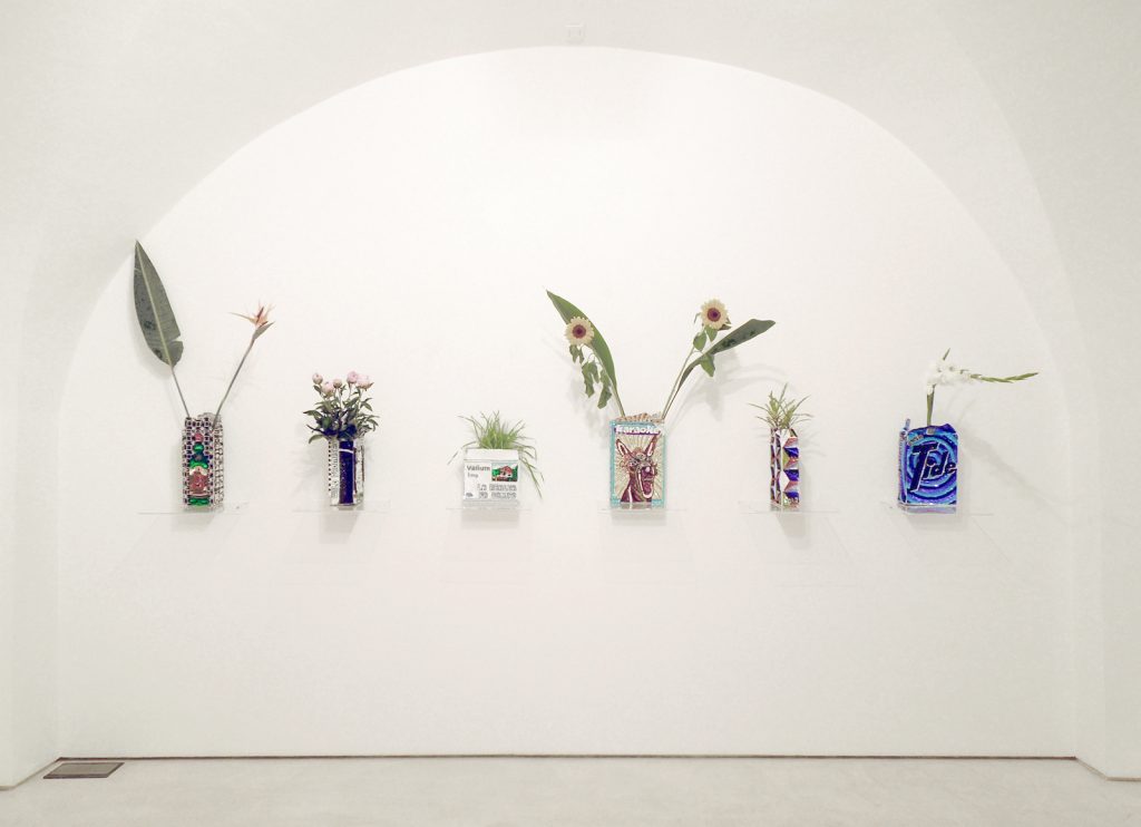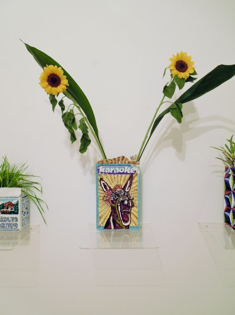 With his monumental public projects, canvases embroidered with beads and sequins and wearable sculptures exhibited in high-impact performances, the Argentinian artist Daniel González (1963) investigates celebratory rites and the boundaries between socio-cultural categories.González, whose works are usually presented in art galleries, museums, festivals and fairs worldwide, and which are held in several private collections, creates irrational and energetic worlds, areas of freedom in which existing conventions collapse. “I’m fascinated by processes that go beyond the ‘sanctification’ of objects and their meanings rather than considering their functions in everyday life. I think perception is about changing, shifting and redefining the relationship between the person and his/her living space as an environment. Every time I am faced with a work of architecture or a spatial installation, I have to consider the needs, the functions and the story of that place as an environment, as a whole” stated Daniel González.González makes his art submit to ordinary life: his artworks can be used, like the flower pots conceived as pop packaging with hand-sewn sequins on canvas or his 3D wallpaper and collages in Mylar. Daniel González takes the collage technique a step further in order to create wonder within the living space, like ephemeral works of design, to celebrate every moment of our lives, pondering through their dazzle handmade minimalist compositions.Daniel González lives and works between Verona (Italy) and New York (USA). In 2004 in Berlin he launched the fashion-brand D.G. Clothes Project, as an artist-run fashion project for the production of unique pieces to collect or to wear. Through this label, González takes art to ordinary people to investigate the limits between the Self and the Exterior Appearance of individuals, through a one-on-one relationship, beyond the concepts of fashion, trend and trademark.