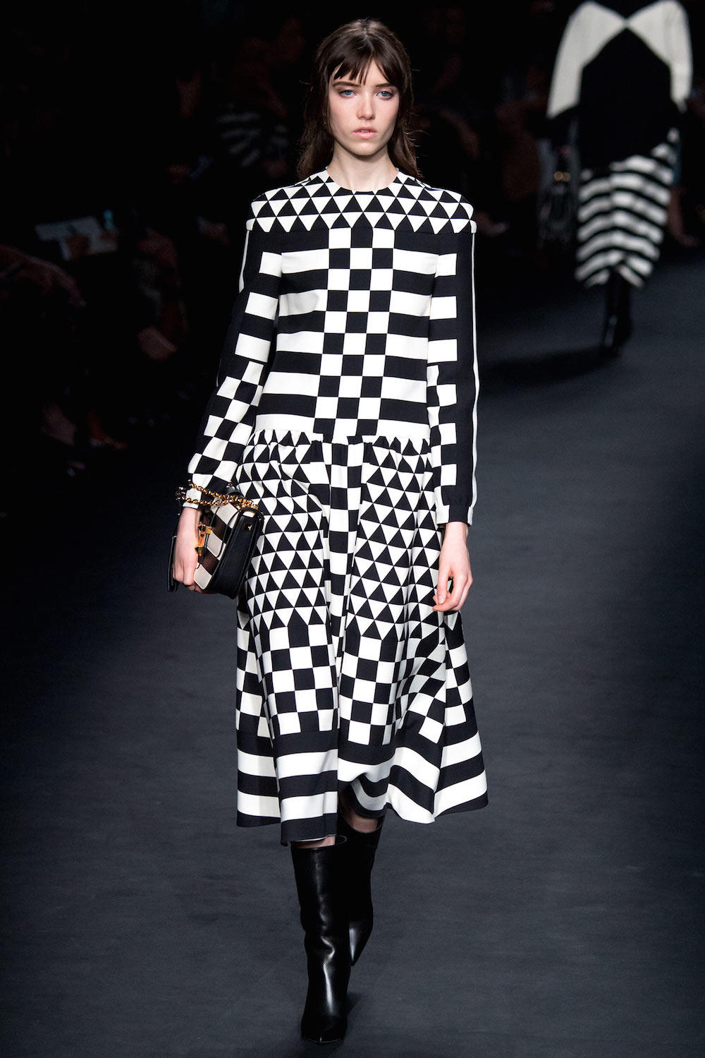 It happens that, when the great couturier give way and leave their house in the hands of the designated successors, often these do not prove up to the task and what we see on the catwalk is a remembrance of blurry past glories. Maria Grazia Chiuri and Piccioli Piccioli are what is called “the exception that proves the rule”. A dream team to love, and above all in love, not only with Valentino, but with women and with fashion that every season they play in the most intelligent and sophisticated way. Eighty-four looks, no less, for a show as it used to be when fashion was really a show, where their vision has ranged in the higher realms that the discipline embraces. The start is an immersion in optical graphics black & white, where geometric silhouettes are defined by strict proportion, but at the same time softened by the impalpability of chiffon skirts, kept down by leather panels, by the softness of angora sweaters and by the movement of bell-shaped sleeves. Then a coat of fur, patchwork of colors and shapes of the past, gives way to the colors of overlapping lace, almost succulent for the tones that are played in, up to pictorial and liquid fantasies, but always with the rigor of a geometric rule and of skirts cut below the knee. Tacking towards the evening means resuming the whites and blacks, deeper this time, and then let go on exotic nights dotted with stars and moons, on a long transparent chiffon dress, Chinese dragons and flowers, colorful but from a night garden. A crescendo that, for those who love fashion, began almost to overwhelm when, deus ex machina, Derek Zoolander and Hansel, AKA Ben Stiller and Owen Wilson, tore the audience of the show a big laugh. Right in Valentino HQ the two actors are shooting the sequel to the highly successful Zoolander. A brilliant touch for what was already stated anyway as memorable.