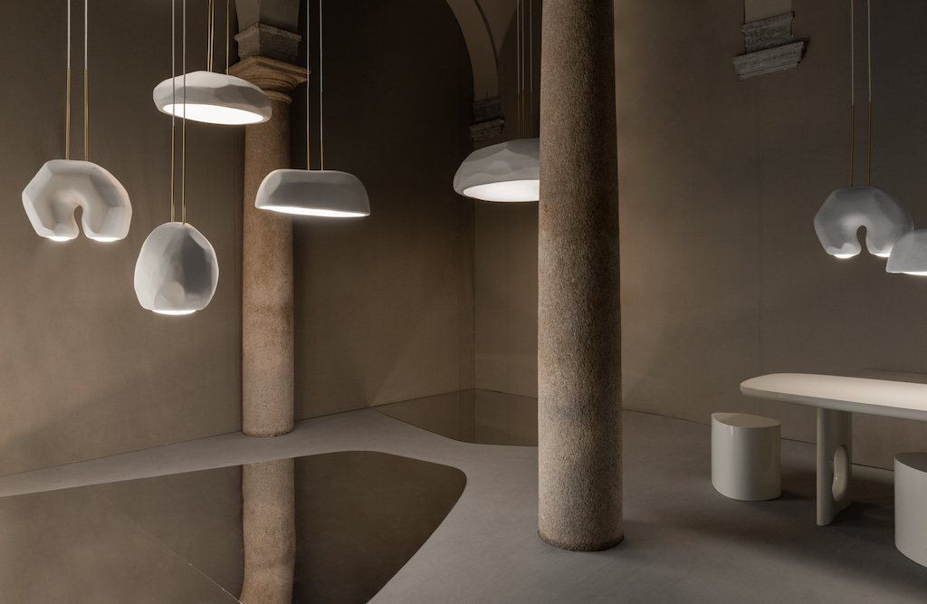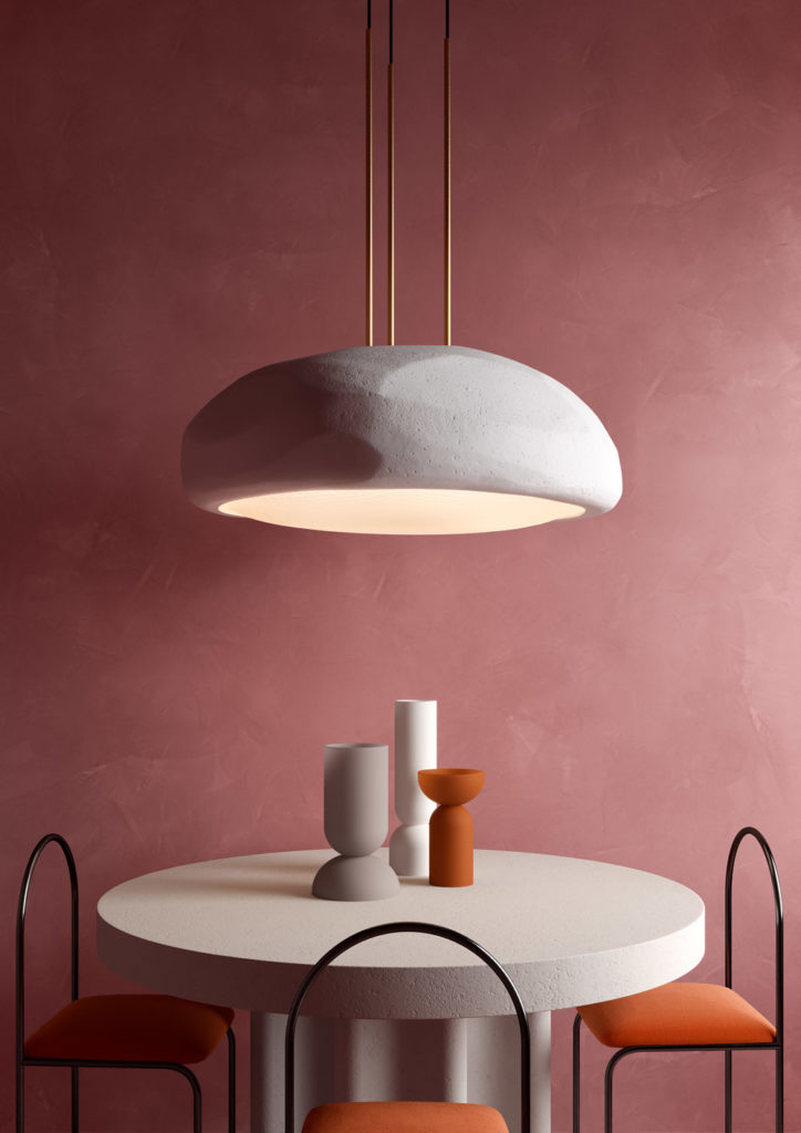 A Lunar Daydream focuses on the Moonstone collection of pendant lamps inspired by organic rock sculptures. Digitally launched before and presented today inside a suggestive setting.