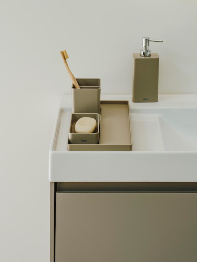 Versatility, wide range and timeless design with soft shapes and geometric lines. Ona includes the latest innovations of the brand, such as Fineceramic® and Stonex® materials, the Everlux finish, touchless technology or Supraglaze® coating. Ona, which means wave in Catalan, is the newest complete bathroom created by Roca, a company born in 1917 near Barcelona on the shores of the Mediterranean Sea. The collection, which offers solutions to fully equip any type of bathroom space has been inspired by Mediterranean Sea landscapes, lifestyle, and values. Ona collection by Roca The presentation of the new Ona collection -a global event streamed from the Joan Miró Foundation in Barcelona, simultaneously followed by 3000 people from all around the world- had the participation of some of the professionals involved in its design, development, and production processes as well as its communication campaign. Marc Viardot, Roca Group’s Corporate Marketing, and Design Director; Carolina Velasquez, chief designer at NOA Intelligent Design; Gae Benedito, Senior Product Designer at Benedito Design; Gabriel Escamez, founder of the interior design studio Cobalto; and Daniel Ayuso, creative director of the branding agency Clase Bcn, took part in a round table conducted by Nuria Moliner, architect, communicator, and researcher. Developed by the Roca Design Center team in collaboration with the international design studios Noa Design and Benedito Design, the collection is defined by a Mediterranean-inspired design with soft shapes in geometric lines. Manufactured respecting natural materials and with a transversal approach to sustainability, Ona stands out for its versatility perfect from private bathrooms to public spaces. It is a complete bathroom collection -basins and furniture, faucets, baths, accessories, WCs, and bidets- that combines highly functional and accessible timeless design with new standards of hygiene and comfort. Fineceramic® in basins: natural hygiene and delicate shapes A good example of this versatility is the wide range of basins and their combinations with the available furniture units. Designed in collaboration with Noa Design, the basins are an example of all possibilities offered by Fineceramic®, the ceramic material that allows for finer and lighter pieces that adapt to any size. Moreover, Fineceramic® facilitates a more sustainable production process: it generates zero waste, all its composites are natural and the weight reduction positively impacts firing and transport, reducing CO2 emissions. The basin range includes different options where the bowl is placed asymmetrically or centered to provide extra useful shelving space. Over countertop, basins are also available in rectangular and round shapes, always in white and matt white finishes. The glossy white has the option of Supraglaze® coating. This extra smooth surface, allows microscopic residue to slide off and inhibits dirt buildup. Ona furniture matt green Ona offers the right furniture option for each basin, thanks to standard solutions with one drawer, two drawers, or simple doors. They all feature a soft-close system and full extraction drawers and are available in a purely Mediterranean range of colours (matt white, matt grey, dark elm, light oak, and matt green). Ona complements furniture Ona’s proposal for accessories manufactured with recyclable materials -they have been specifically designed to fit the basin shelf or the standard drawers of the furniture- also responds to the simple and functional character of the collection. It includes a pack with countertop elements (tray, container, soap dispenser, and tumbler), available in three matching furniture colours (matt white, matt grey, and matt green). Ona complements Faucets with character One of Ona’s most singular elements is a faucet with a distinguishing look, conceived by Benedito Design. It represents the perfect balance between design, technology, and sustainability. It stands out for its cylindrical and particularly slim body, available in different heights and spout lengths with a flat minimalistic handle. Ona faucet mat black Inside it, the Cold Start opening system, the flow limiter, and a ceramic cartridge with reduced diameter guarantee greater efficiency, both in water and energy consumption. Ona faucets are available in four finishes: the chrome option with Evershine electrolytic coating, the two new colours provided by the exclusive Everlux PVD finish (titanium black, and rose gold) and the classic matt black. The range also includes versions for shower and bath (wall-mounted and built-in), kitchen, and public bathrooms, with the touchless operation. Baths to feel closer to the Mediterranean The bathtubs recall a peaceful and relaxing swim in the Mediterranean thanks to the large inner dimensions and the pleasant touch of Stonex®. Also inspired by natural resources, this exclusive Roca material stands out for its antislip properties, its resistance to abrasion, and durability. The collection offers built-in versions in two dimensions and models for corner-right or corner-left installation. Ona master bathroom green Rimless toilets, maximum hygiene standards Unobtrusive toilets and bidets make the collection complete. All WCs are of the latest rimless generation and feature and have the Supraglaze® coating option, innovations that make cleaning easier and guarantee outstanding hygiene standards. Ona proposes toilets in different dimensions, with wall-hung, close-coupled and floor-standing models, as well as compact versions and wall-hung and back-to-wall bidets. This range also stands out for its extra height to provide greater comfort, as well as a larger flush button. Ona public bathroom
