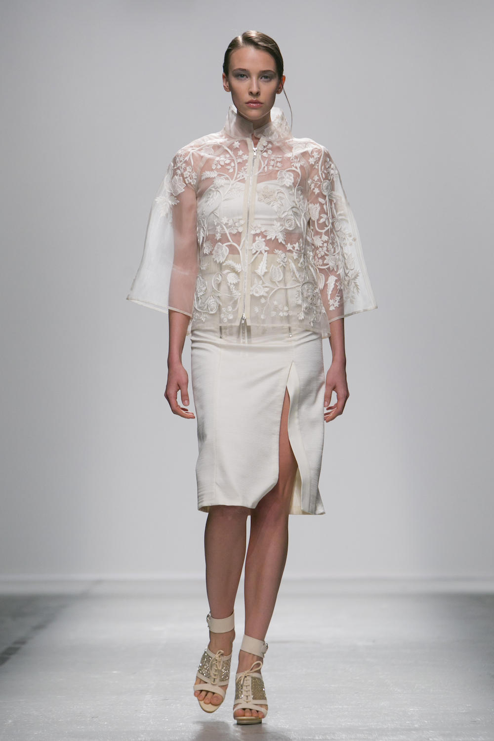The fashion of young talents, the real ones, speaks of style that goes with the concept, and brings clear messages that is inevitable to capture. Rahul Mishra is the winner of the International Woolmark Prize 2014, and has just debuted at Paris fashion week with The Ferryman’s Tale, a collection inspired by the journey of an Indian sailor reflecting on distances between Eastern artisans and retailers in the West. “I’m like a storyteller in a small boat that travels between different places,” said Mishra. “In small villages in India I met craftsmen and manufacturers and now I’ve sailed to Paris to tell their stories in a new light”. Emerges a delicate vision, with meticulous workings which celebrate Indian design labor, translated into geometric and floral embroidery declined in ethereal colors such ivory, gold, black and yellow. Tactility, aside the visual impact, becomes fundamental to fully grasp the nature of the collection, expressed by the impalpability of silk organza that is tied to superfine Merino Wool, building graphic shapes and complex structures. “I think these little knots are like bubbles of thoughts; if you use them correctly, you can create poetry” said Mishra. It is not just an ode to beauty. It is an important reflection on the richness of Indian tradition and the abilities of its artisans and designers. Why not start right from fashion to enhance them? “What creates the force is when multiple hands join to create beauty”.