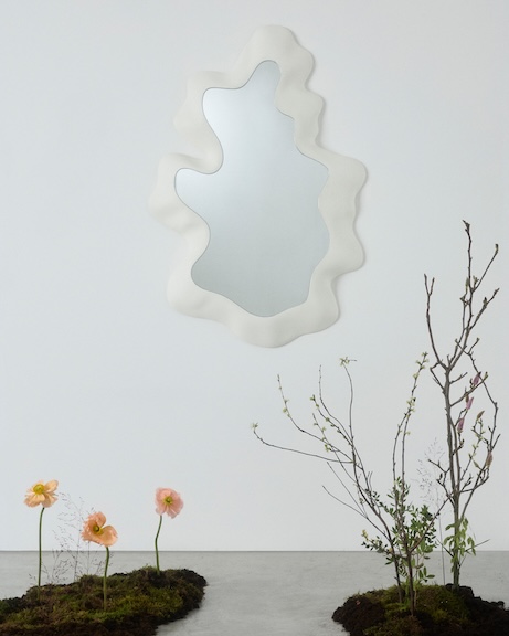 The shape of the SCULPTED MIRROR is designed to create a dialogue with any space. Everything is interconnected, everything flows and changes shape: not only in a natural environment, but also at home. The gesture of looking in the mirror is part of a routine, which, like the cycle of water or the seasons, is repeated in different ways.