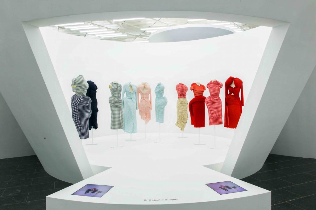 Sponsored by Condé Nast, the exhibition features approximately 140 examples of Kawakubo’s womenswear designs for Comme des Garçons, dating from the early 1980s to her most recent collection. Objects are organized into nine dominant and recurring aesthetic expressions of interstitiality in Kawakubo’s work: Absence/Presence, Design/Not Design, Fashion/Anti- Fashion, Model/Multiple, High/Low, Then/Now, Self/Other, Object/Subject, and Clothes/ Not Clothes.