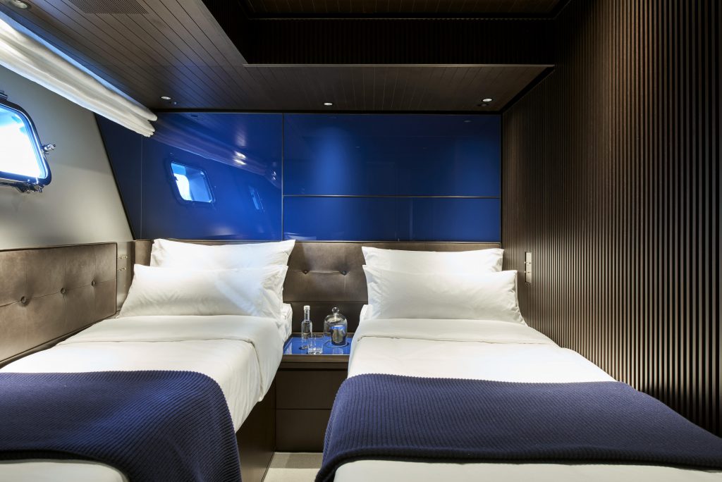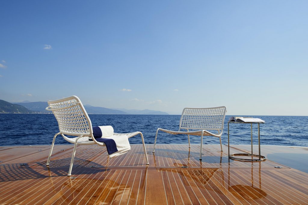 Another major feature of the project was the decision to remove all excesses of functionality inside as well as outside: removing all useless extra spaces and reducing technical spaces while favouring livableness indoors, the design of yacht SX88 uses all depths. All exterior areas show that every centimetre of the boat has been conceived to be used and enjoyed.Piero Lissoni’s stylistic sign also emerges in the choice of furniture, which is a triumph of contamination: design ideas, icons of great masters, objects from the East and objets trouvésmix up to provide the setting with a domestic flavour. A key factor was the counter-current decision to not adapt furniture to space but to arrange it freely as in a home setting.