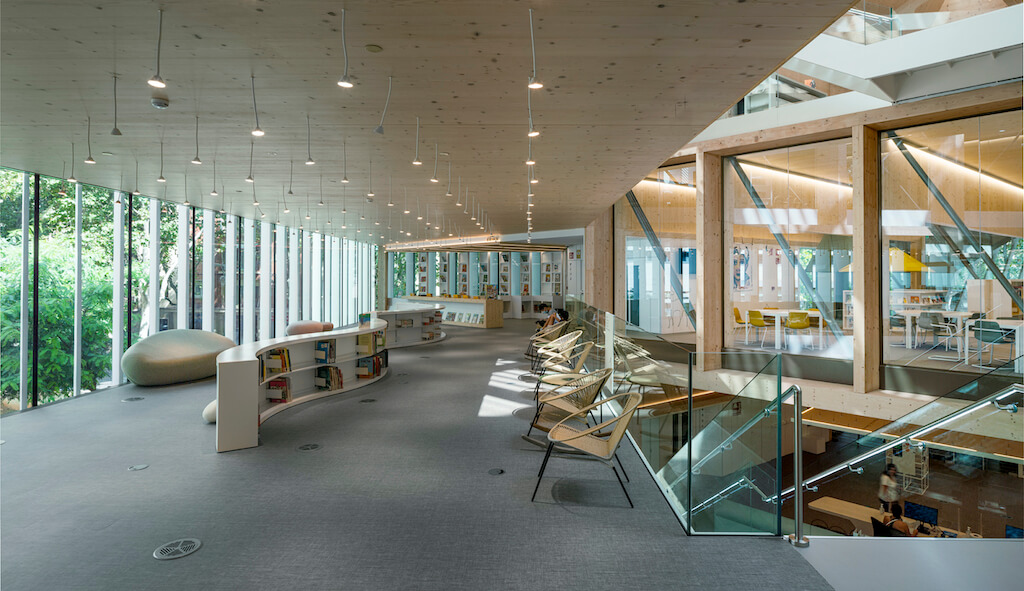 Gabriel García Márquez Library, designed by SUMA arquitectura in Sant Martí district of Barcelona, stands out for its exceptional features and the contribution it has made to the local community. A public library, as a public space par excellence, becomes in the 21st century everyone’s home, so any user will find his or her special corner. In Barcelona, you can find one that stands out for its exceptional features and the contribution it has made to the local community. Biblioteca Gabriel García Márquez On 21 August 2023 in Rotterdam, The Netherlands, Biblioteca Gabriel García Márquez in Barcelona, Spain, was awarded as Public Library of the Year 2023 at the 88th IFLA World Library and Information Conference. The Biblioteca Gabriel García Márquez, designed by SUMA arquitectura in Sant Martí district of Barcelona, is an architectural and functional marvel, resembling a stack of open books and serving as a central community hub for 240,000 residents. In line with the UN Sustainable Development Goals and IFLA’s Global Vision, the Biblioteca Gabriel García Márquez embodies a holistic approach to sustainability, community engagement, and knowledge empowerment. Through its design, programming, and commitment to environmental and social responsibility, it serves as a beacon of inspiration for libraries around the world. Named after the renowned Nobel Prize laureate in literature, Gabriel García Márquez, the library embodies the spirit of interaction with its surroundings and local culture. “This recognition is not only for Biblioteca Gabriel Garcia Marquez It’s for the entire team of Barcelona libraries, the library team, the architects, and the municipality of Barcelona. It’s a gift for the citizens. The democratic and social rights and values are key to our library. This recognition is an award for the Barcelona people.” says the Managing Director of Barcelona Libraries City Network, Ferran Burguillos, and Library Director, Neus Castellano. Architects Elena Orte and Guillermo Sevillano, SUMA arquitectura’s founders, stated that “it is a unique district library, presented as a sculptural volume inspired by stacked blocks of books and set on a square slightly elevated above the street, whose large openings and voids dialogue with the surroundings.” Its solid sculptural shape is accentuated by a dense structure of wooden panels that provide unique lighting while defining the library’s character. The floor plan is intelligently designed, creating distinct spaces that cater to different needs and activities. From the showcase agora and ideas forum on the ground floor to the reading house on the upper floor, every area is carefully shaped to provide a warm and welcoming environment for visitors. The main focus of the library is on learning and social connection. To this end, it offers workshops on creativity, languages, and digital literacy. With its unique facilities that include an auditorium, radio studio, cooking workshop, and sensory space for children and young people, the library caters to a wide range of interests and experiences. THE PROJECT The access arcade extends the pedestrian and cultural axis of the neighborhood and connects with the interior. The facility has 4,294 m2 distributed over 5 floors, with a central courtyard that connects all of them and brings natural light into the heart of the building. The structure is a hybrid of laminated and cross-laminated timber and steel, maximizing structural efficiency and architectural performance. Its configuration is based on three cores connected by lattice girders, with an unusual volume of exposed timber and concealed joints. The structure defines and qualifies the space without apparent tectonic stresses and integrates with the program, envelope, and furnishings of each library ecosystem. The result is a great work of joinery, as warm and light as it is permeable and luminous. A dense wood structure enhances haptic qualities (warmth, texture, smell, and hydrothermal performance) and provides warm and intimate zones, while the structural layout offers a great variety of spaces. Photo credits Jesús Granada