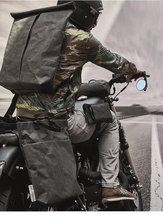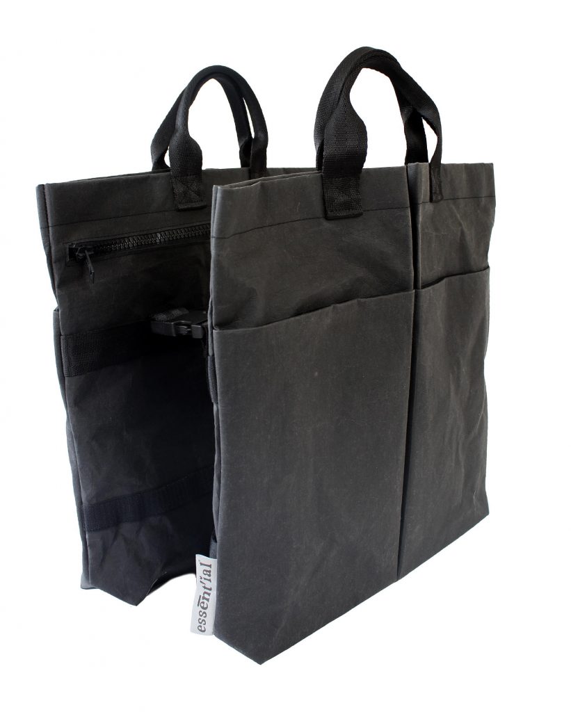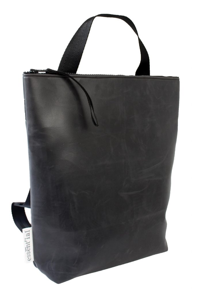 At the last edition of Pitti Uomo, the largest international platform dedicated to Men’s clothing and accessories collections, in the new ‘total black’ look, Essent’ial presents two new collections – ‘iMOTORBIKE’ and ‘SOFT BLACK’ – inside the ‘I PLAY’ section, the world of Urban Living connected to technical/sports clothing. The Essent’ial collections also introduce two new materials – canvas and a soft-to-touch material, that are added to those already in use – and are always more fashionable and extremely comfortable! With its constant focus on sustainability and the reuse of materials, combined with the prioritisation of its products’ design, Essent’ial offers a collection made from natural materials such as recycled and FSC* certified cardboard, paper and cellulose fibre. The new line ‘iMOTORBIKE’ – entirely dedicated to motorcyclists – includes accessories for centaurs that need practicality and comfort, looking for an essential style without giving up on the fashion element, to face the road with a modern ad elegant look. All the items in this line are black and are available in three different materials: cellulose fibre, bonded leather and canvas (with red details). The Shoulder Helmet Motorbike is a spacious over-the-shoulder helmet holder made up of one or two practical and removeable sections and a rear pocket, to travel light and with full freedom of movement. The backpack helmet holder Messenger Helmet Motorbike has a rear pocket, to keep hold of all your essential items for travelling, and has a velcro closure. The Cilindro Motorbike, the Leg Motorbike pouch to put your house keys, your sunglasses, your wallet and your cellphone and the ‘tool bag’ Porta Attrezzi complete the collection. The ‘SOFT BLACK’ line Essent’ial introduces two backpacks Size XL and Size L, the pouch Size M as well as the large bag ‘borsone’ Size XXXL.
