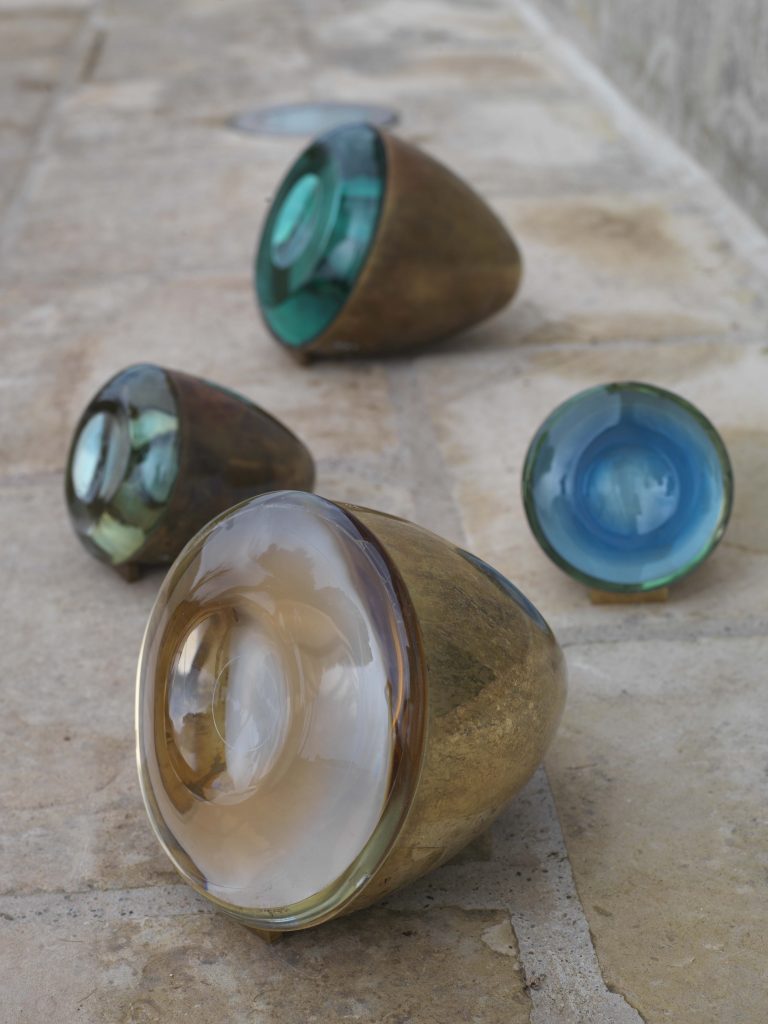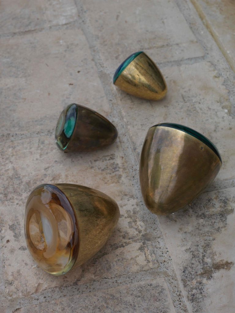 On the occasion of the Milan Design Week 2018, Artplayfactory and Effettovetro submitted at Zeus gallery their first collaboration: Ussari Bay, a new lamps collection based entirely on the glass. The Ussari Bay Collection is inspired by the Siberian beach in Vladivostok, where its name comes from. ‘Glass Beach’ has been the principal landfill of glass for the local industries during the Soviet occupation. Nowadays the same bay which was closed for years as a danger zone is a marine protected area. The natural erosion model the glasses obtaining, as a result, an incredible world of coloured light reflections. Angela Ardisson wanted a monolith role assumed by the glass for this collection, is a stone and a lens at the same time where the light passes through. Effettovetro has carefully collaborated in this monolith, mixing several colours in different levels. The result is a mélange of shades, dominant by transparency. The brass diffuser is smooth and curved, primordial like an egg section, tapered like a rounded ogive. Ussari Bay exists in small, for table and wall fixture, and big versions, for ground and outdoor.
